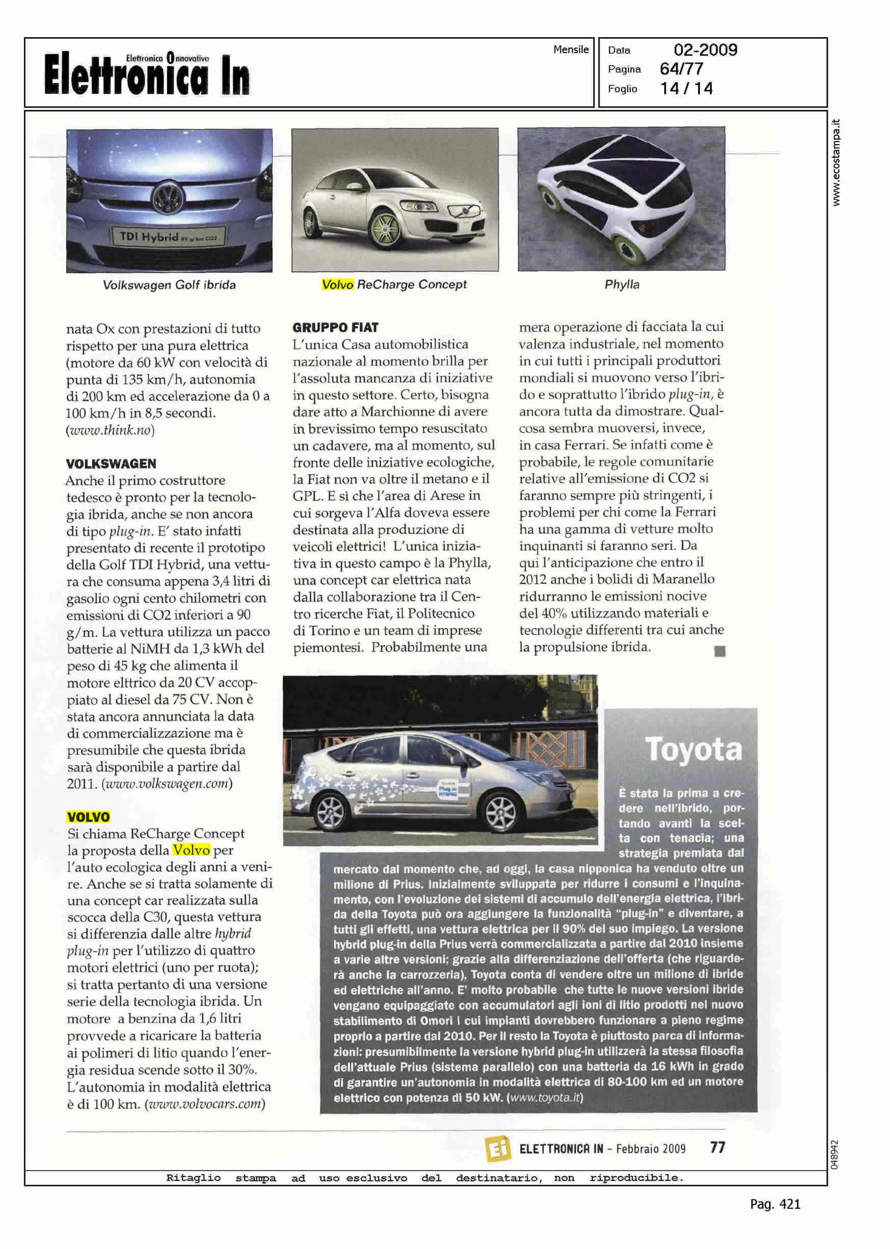 Author: SPADONI, ARSENIOLine: Corporate Model: Volvo C30 Subject: C30 ReCharge Title: AUTOMOBILI, ELETTRICHE ALLA CARICAHighlight: