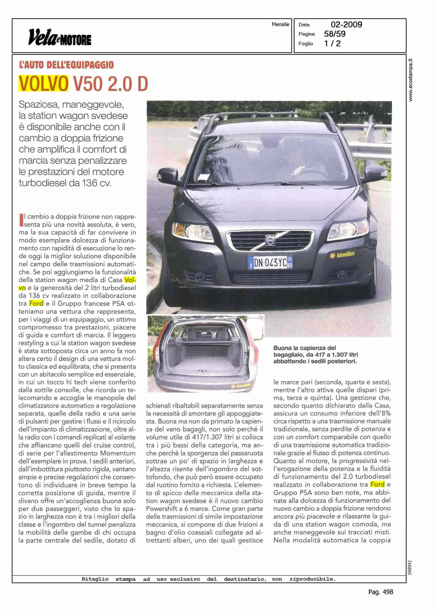 Author: Line: Corporate Model: Volvo S40 - V50 Subject: - Title: L'AUTO DELL'EQUIPAGGIO - VOLVO V50 2.0DHighlight:
