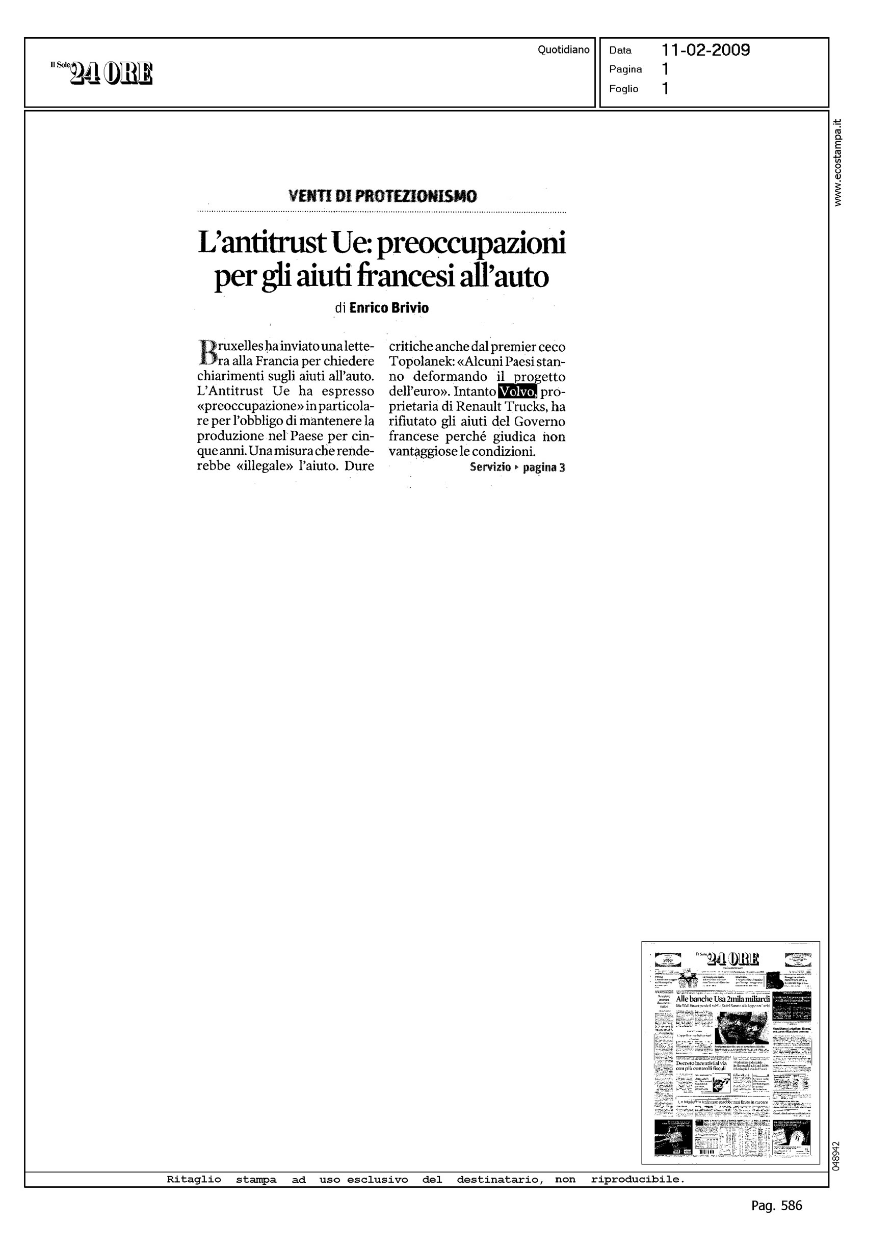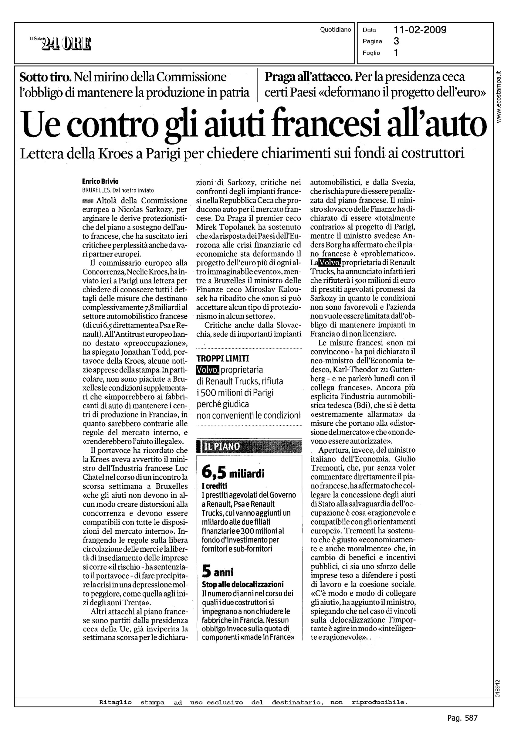Author: BRIVIO, ENRICOLine: Corporate Model: Corporate Subject: - Title: UE CONTRO GLI AIUTI FRANCESI ALL'AUTOHighlight: