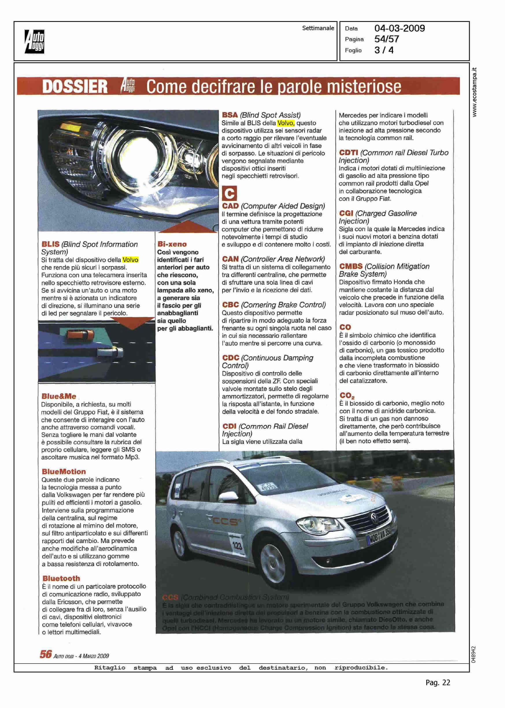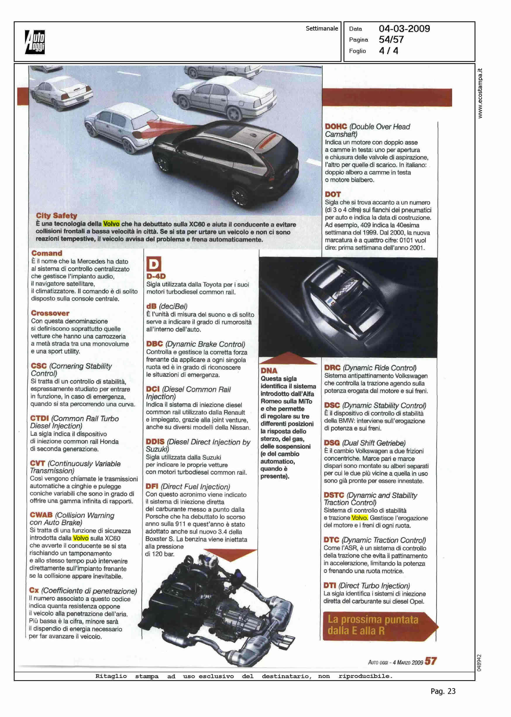 Author: DE FELICE, ANTONIOLine: XC60 Model: Subject: City Safety Title: IL DIZIONARIO TECNOLOGICO 2009Highlight: