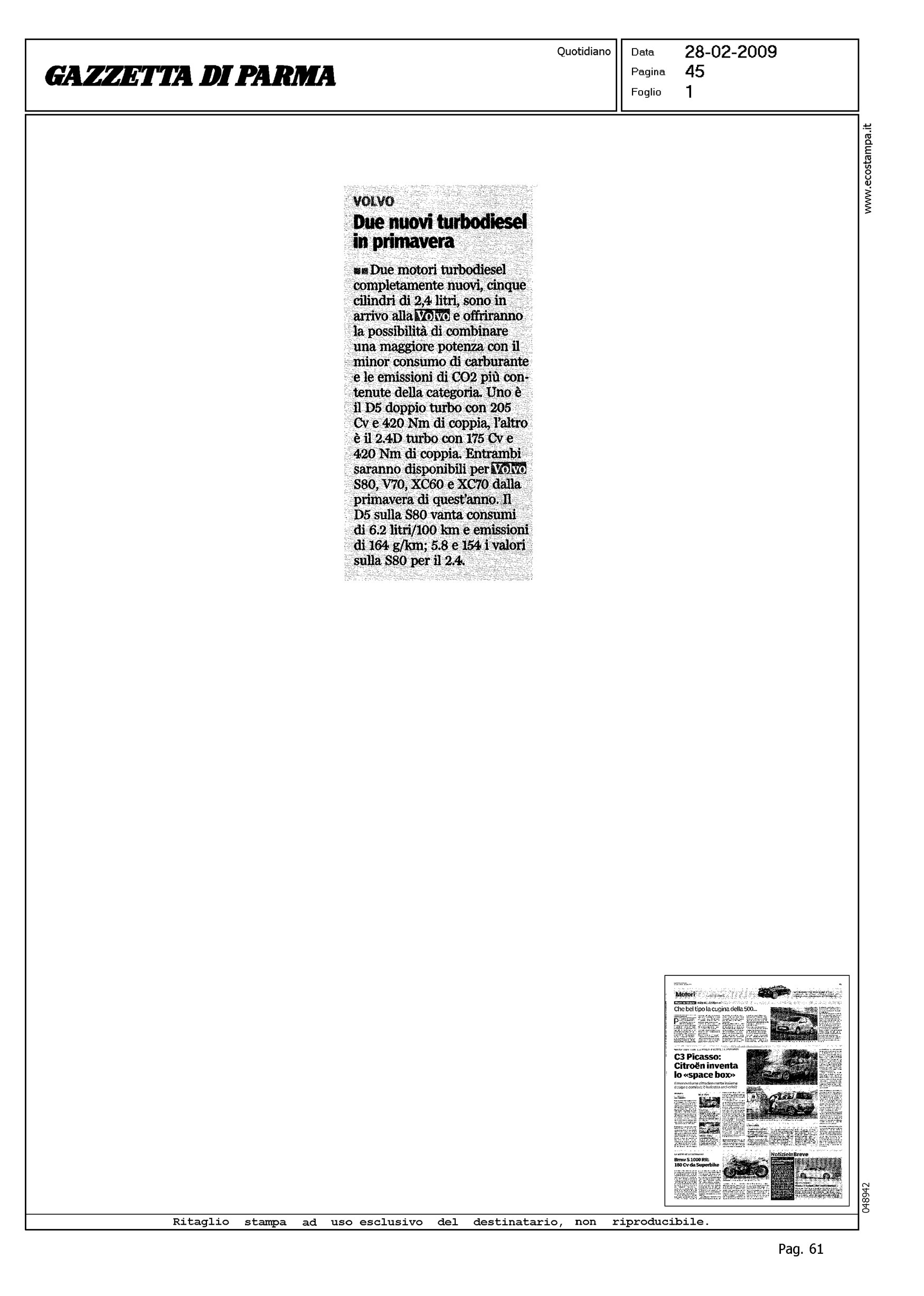 Author: Line: Corporate Model: Corporate Subject: - Title: VOLVO - DUE NUOVI TURBODIESEL IN PRIMAVERAHighlight: