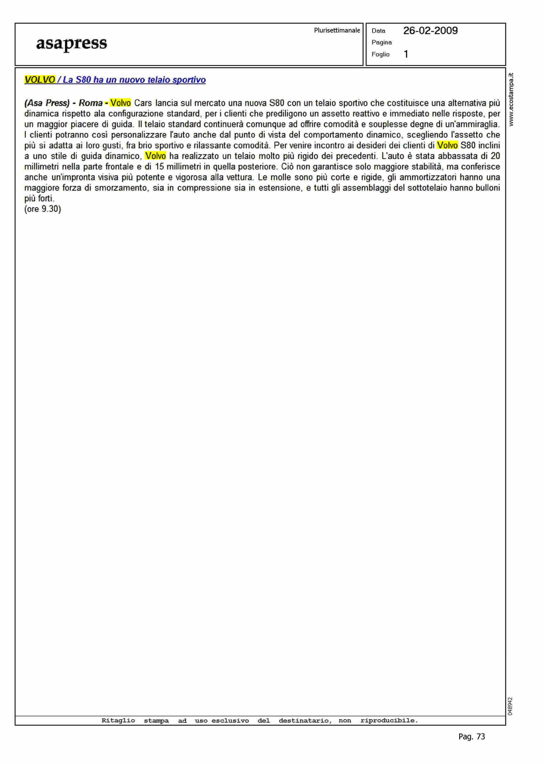 Author: Line: Corporate Model: Volvo S80 Subject: - Title: VOLVO/LA S80 HA UN NUOVO TELAIO SPORTIVOHighlight: