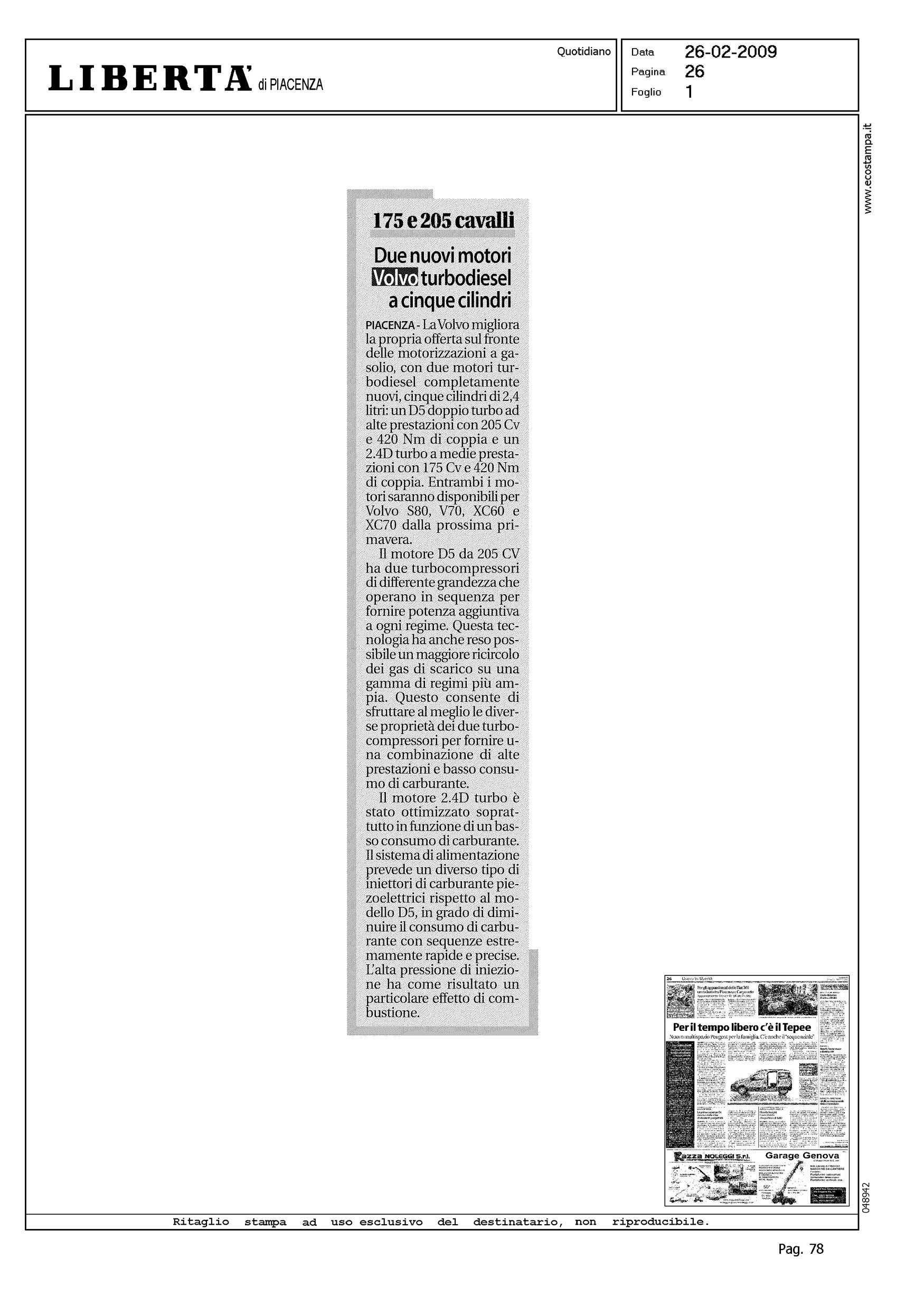 Author: Line: Corporate Model: Corporate Subject: - Title: DUE NUOVI MOTORI VOLVO TURBODIESEL A CINQUE CILINDRIHighlight: