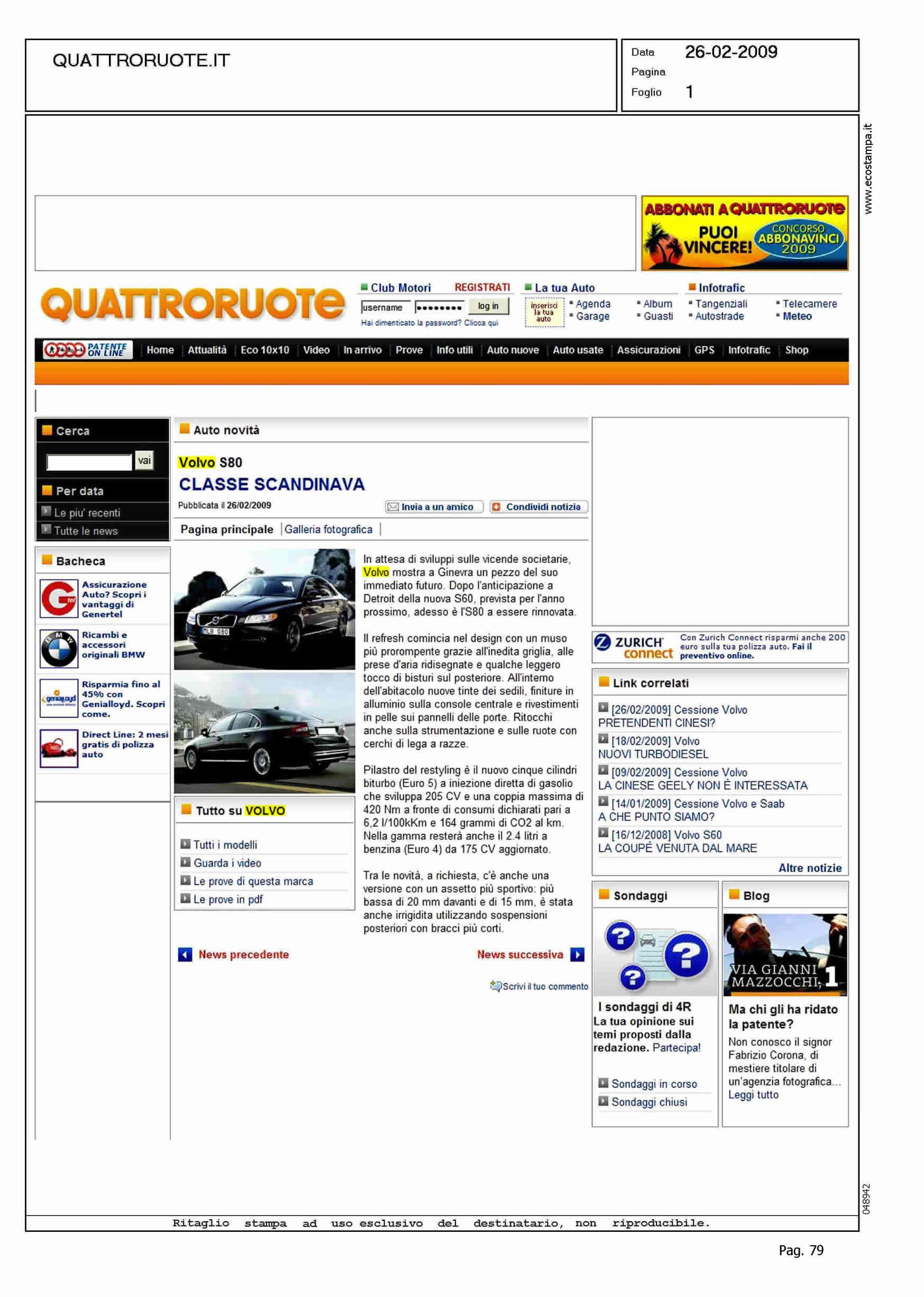 Author: Line: Corporate Model: Volvo S80 Subject: - Title: VOLVO S80 - CLASSE SCANDINAVAHighlight: