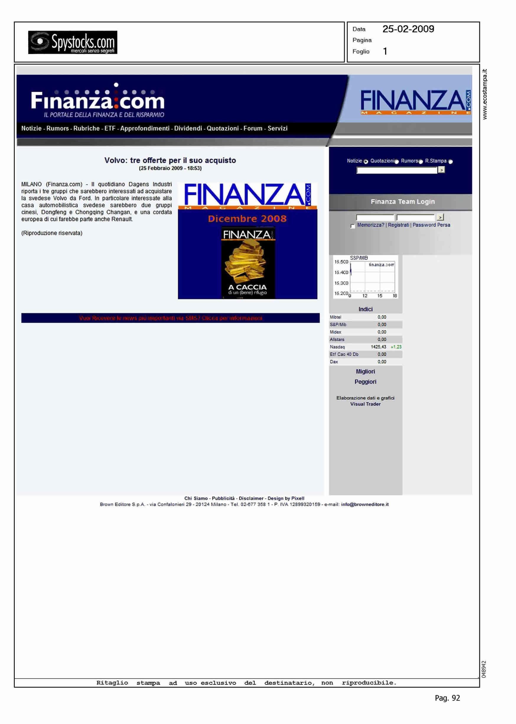 Author: Line: Corporate Model: Corporate Subject: - Title: VOLVO: TRE OFFERTE PER IL SUO ACQUISTOHighlight: