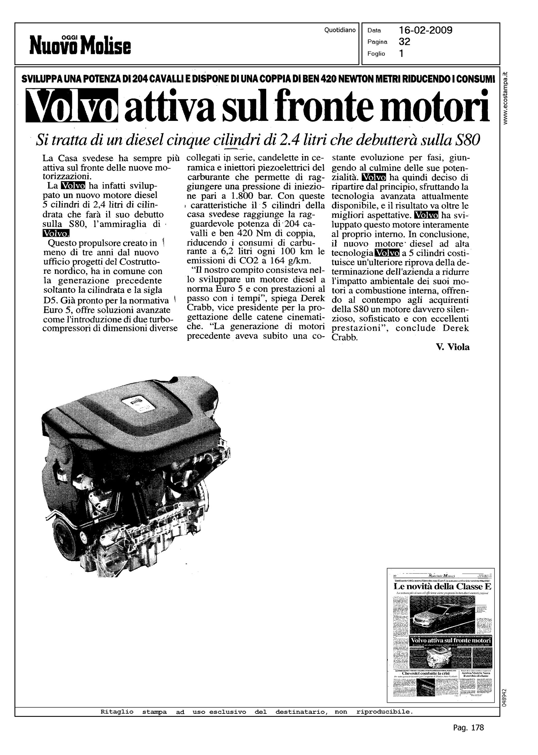 Author: VIOLA, VINCENZOLine: Corporate Model: Corporate Subject: - Title: VOLVO ATTIVA SUL FRONTE MOTORIHighlight: