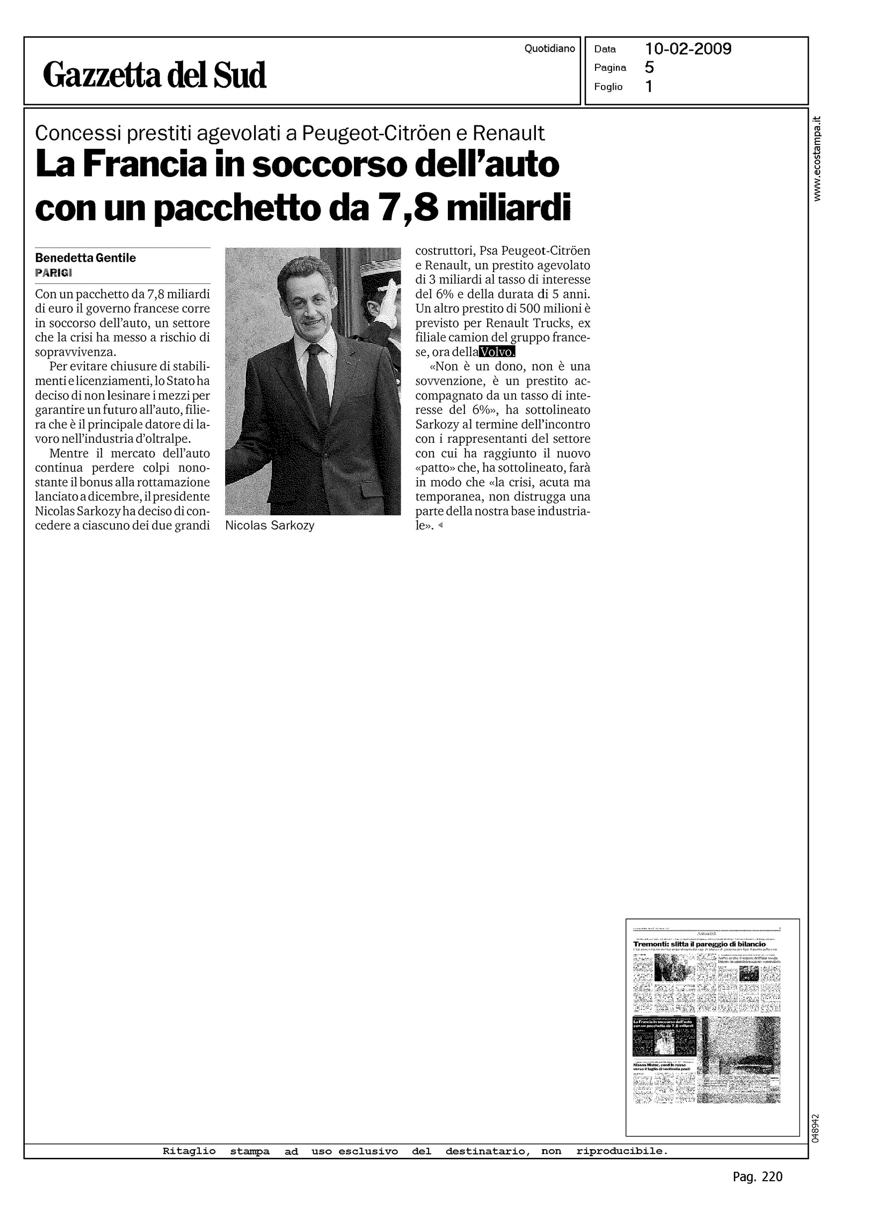 Author: GENTILE, BENEDETTALine: Corporate Model: Corporate Subject: - Title: LA FRANCIA IN SOCCORSO DELL'AUTO CON UN PACCHETTO DA 7,8 MILIARDIHighlight: