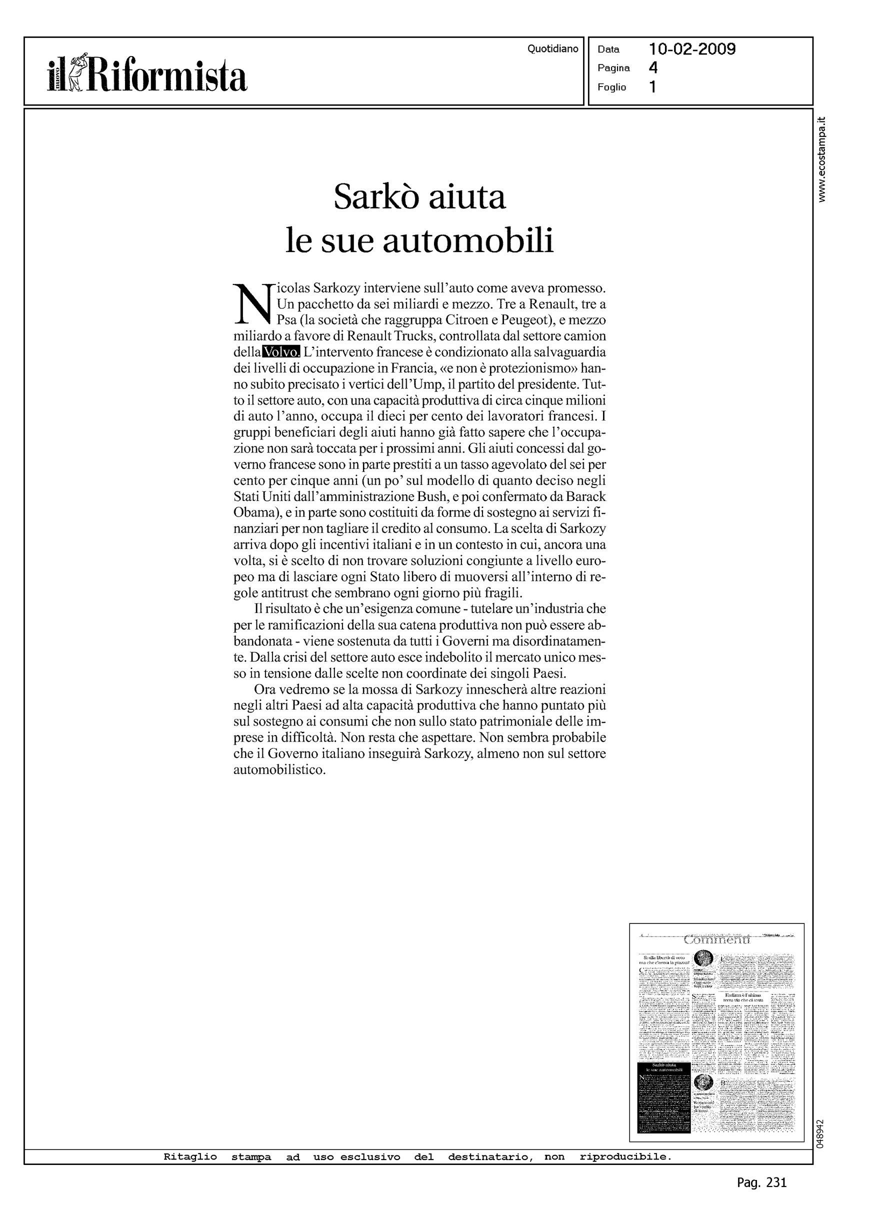 Author: Line: Corporate Model: Corporate Subject: - Title: SARKO' AIUTA LE SUE AUTOMOBILIHighlight: