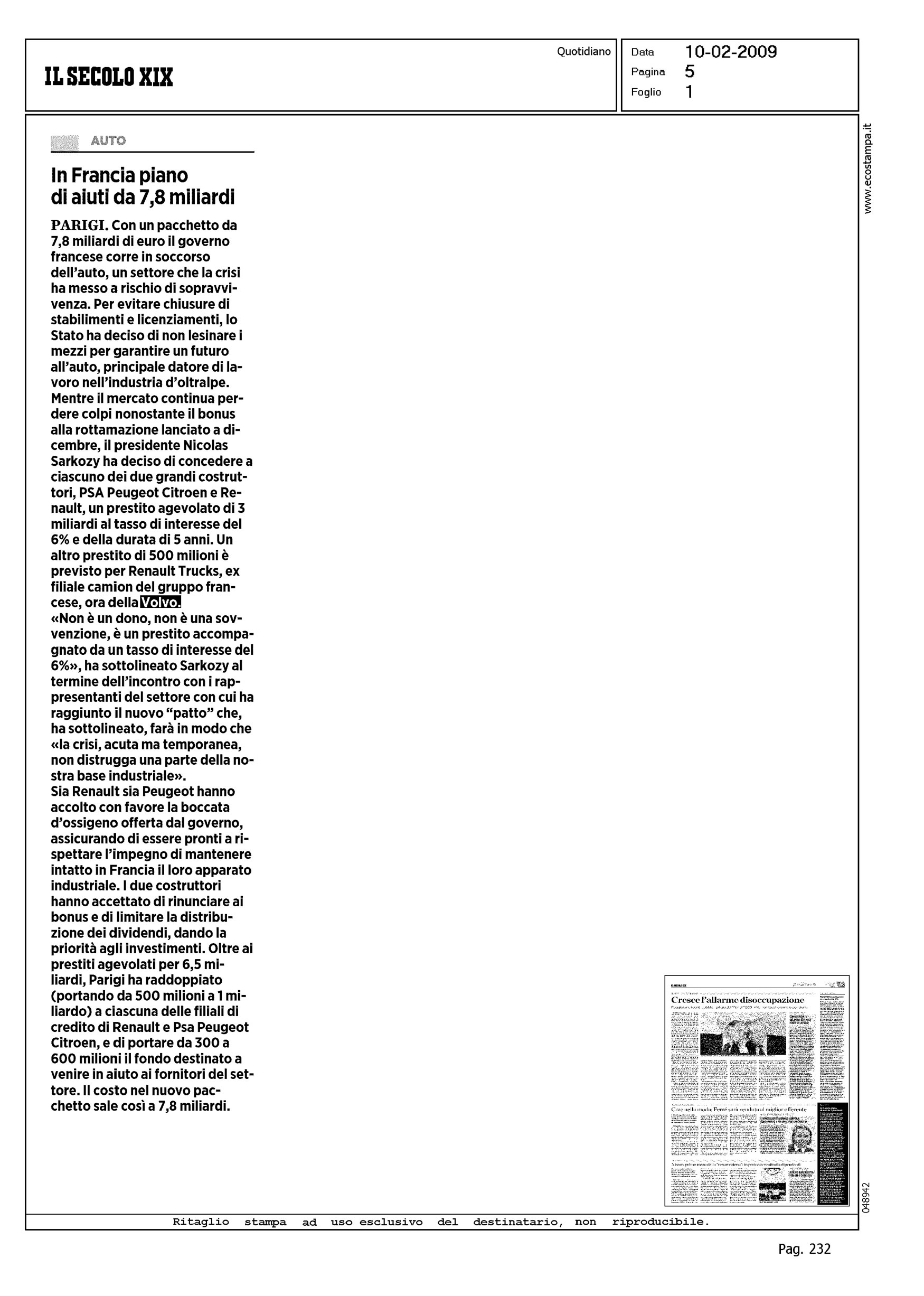 Author: Line: Corporate Model: Corporate Subject: - Title: IN FRANCIA PIANO DI AIUTI DA 7,8 MILIARDIHighlight: