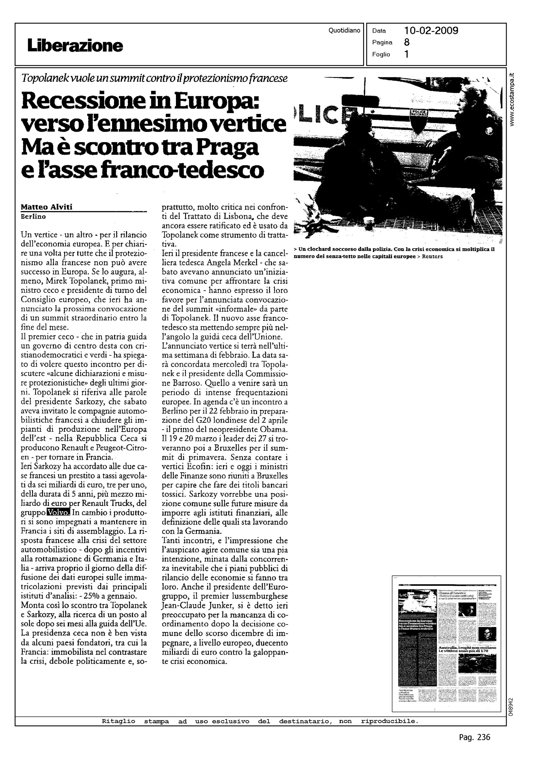 Author: ALVITI, MATTEOLine: Corporate Model: Corporate Subject: - Title: RECESSIONE IN EUROPA: VERSO L'ENNESIMO VERTICE - MA E' SCONTRO TRA PRAGA E L'ASSE FRANCO-TEDESCOHighlight: