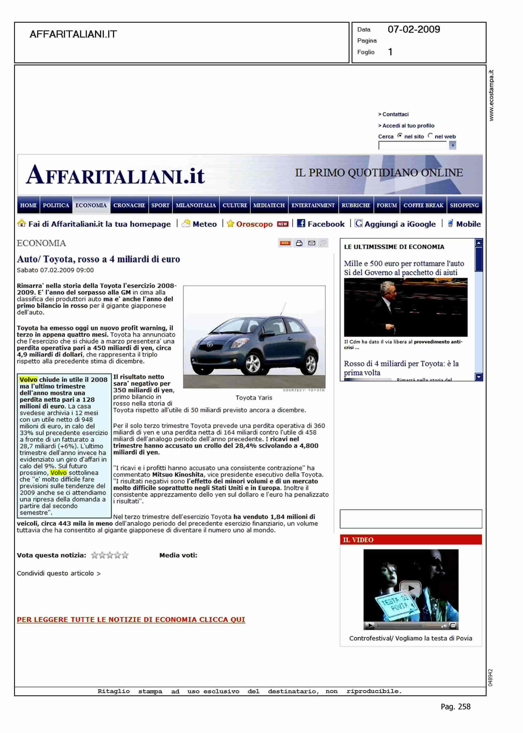 Author: Line: Corporate Model: Corporate Subject: - Title: VOLVO CHIUDE IN UTILE IL 2008...Highlight: