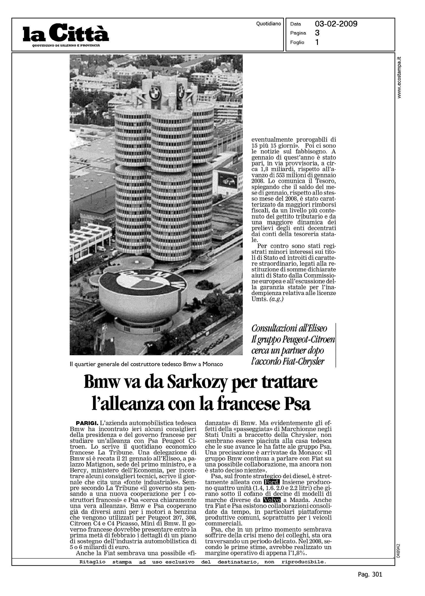 Author: Line: Corporate Model: Corporate Subject: - Title: BMW VA DA SARKOZY PER TRATTARE L'ALLEANZA CON LA FRANCESE PSAHighlight: