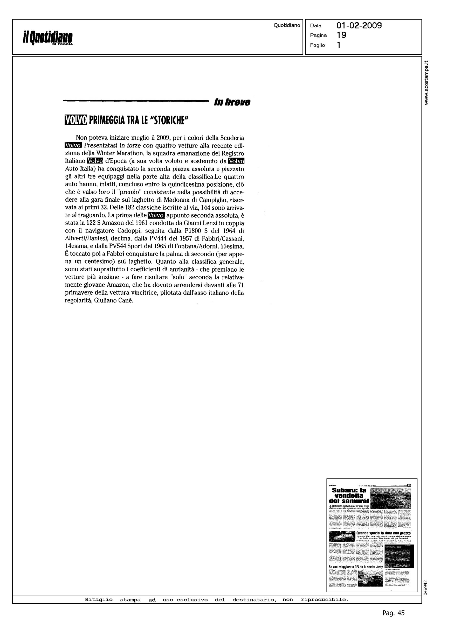 Author: Line: Corporate Model: Corporate Subject: - Title: VOLVO PRIMEGGIA TRA LE "STORICHE"Highlight: