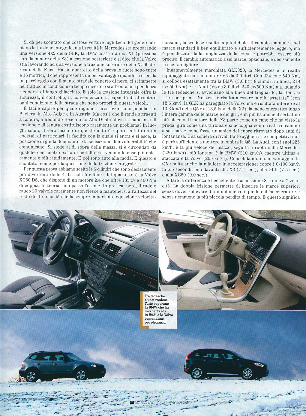 Author: SCAGLIONE, GIORGIOLine: XC60 Model: Subject: - Title: SUV COMPATTI A DUELLO "INTEGRALE"Highlight: