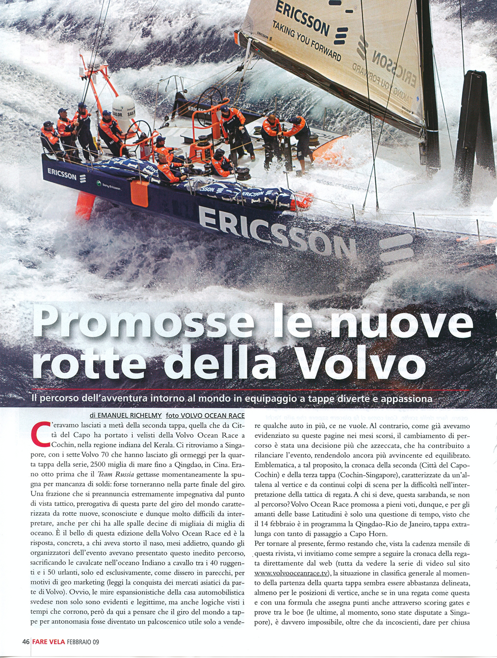 Author: RICHELMY, EMANUELLine: Corporate Model: Corporate Subject: Volvo Ocean Race Title: PROMOSSE LE NUOVE ROTTE DELLA VOLVOHighlight: