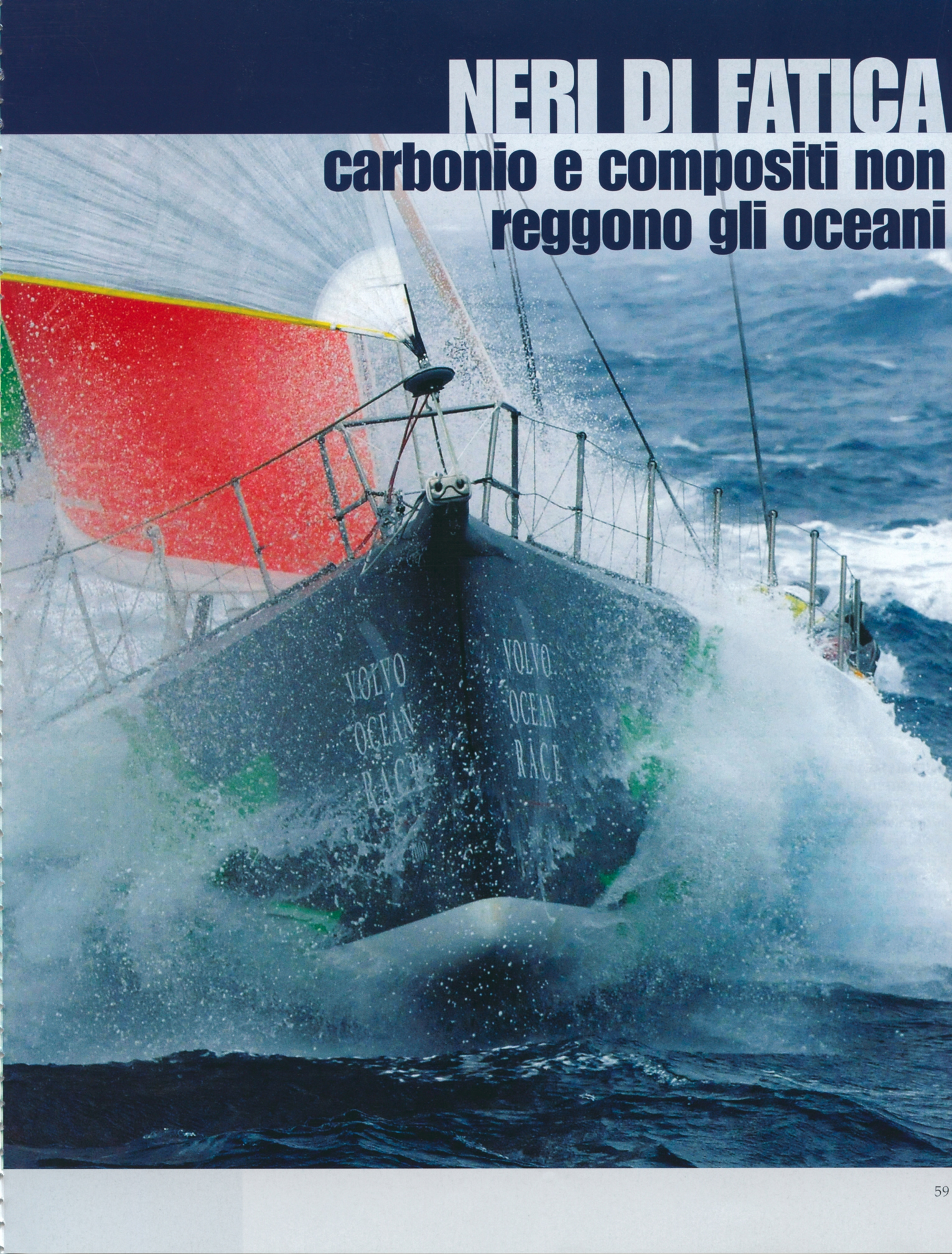 Author: MARTINELLI, EMILIOLine: Corporate Model: Corporate Subject: Volvo Ocean Race Title: NERI DI FATICA CARBONIO E COMPOSITI NON REGGONO GLI OCEANIHighlight:
