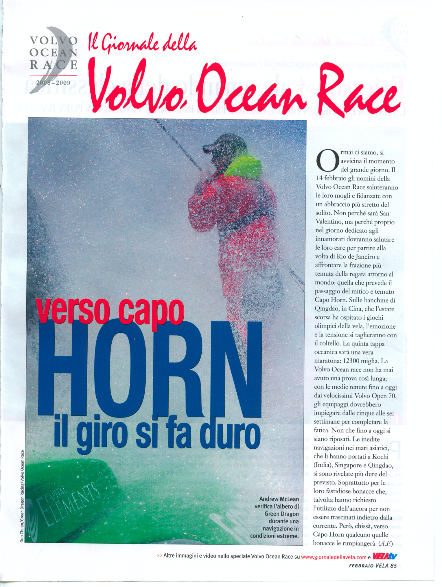 Author: FALCON, ANDREALine: Corporate Model: Corporate Subject: Volvo Ocean Race Title: VERSO CAPO HORN IL GIRO SI FA DUROHighlight: