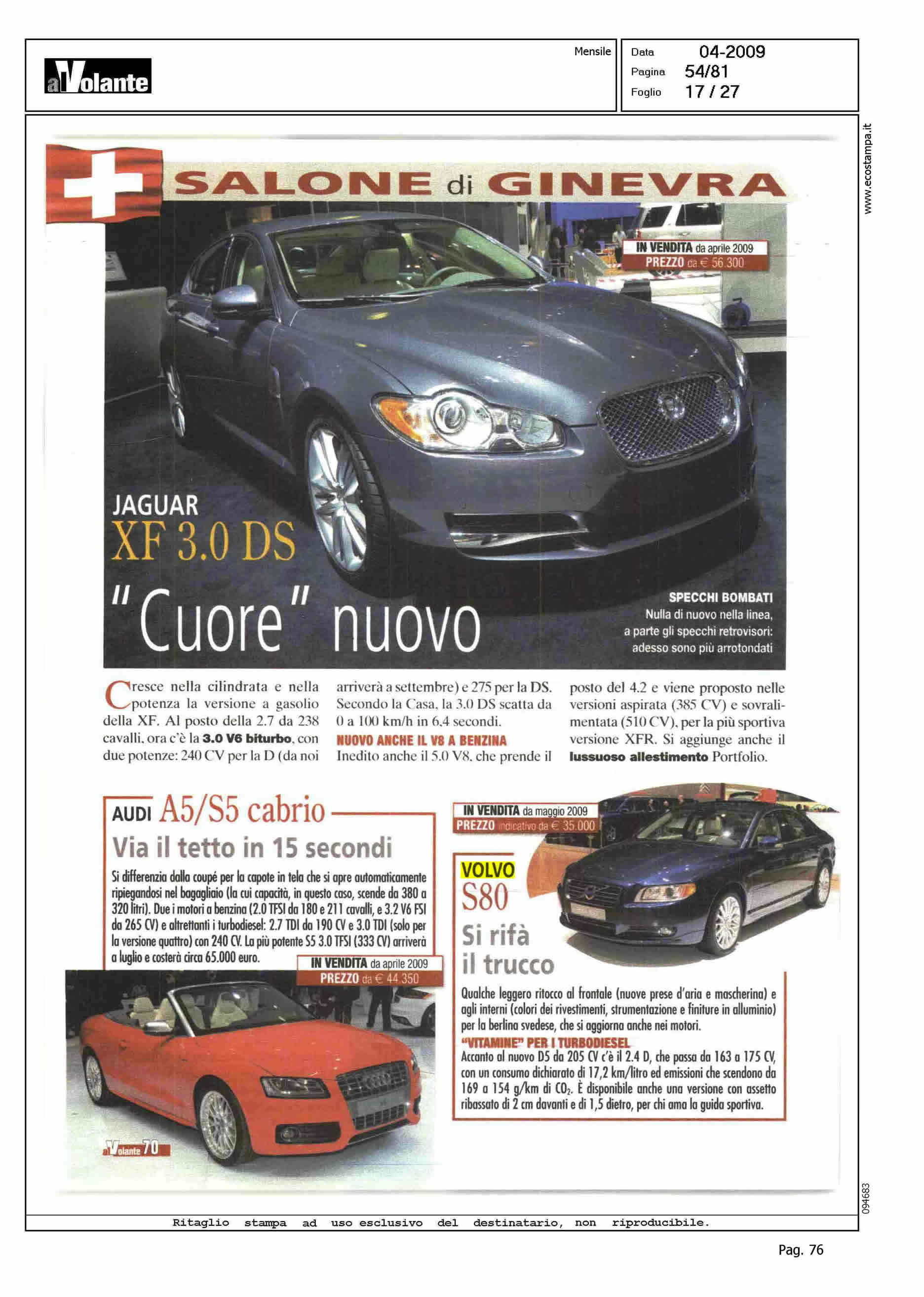 Author: Line: Corporate Model: Corporate Subject: - Title: SALONE DI GINEVRA - Ce la mette tutta per non sprecare - Anche se grandi, amano gli incentivi - Più verdi con la trazione anteriore - Si rifà il truccoHighlight: