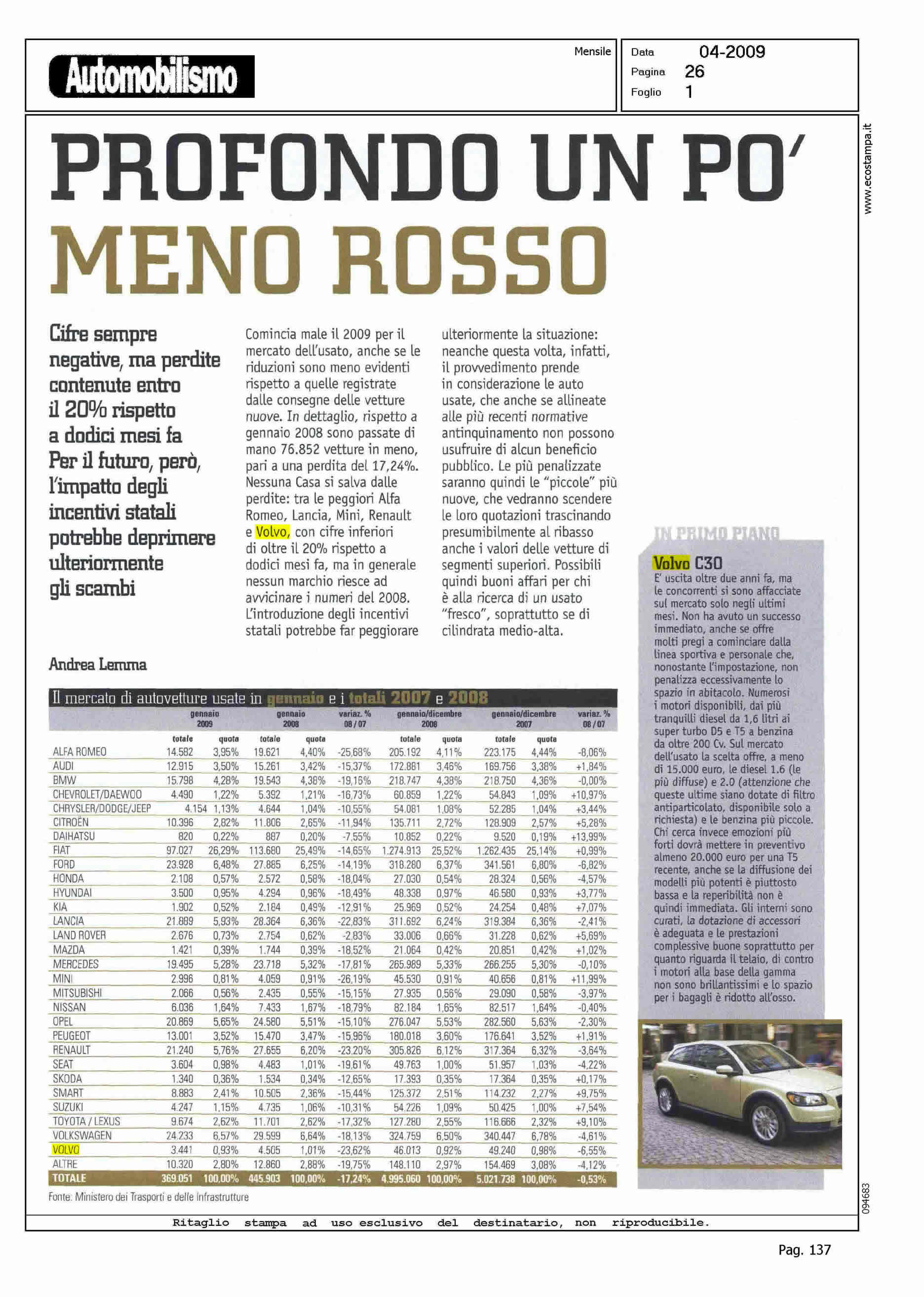Author: Line: Corporate Model: Volvo C30 Subject: - Title: IN PRIMO PIANO - VOLVO C30Highlight: