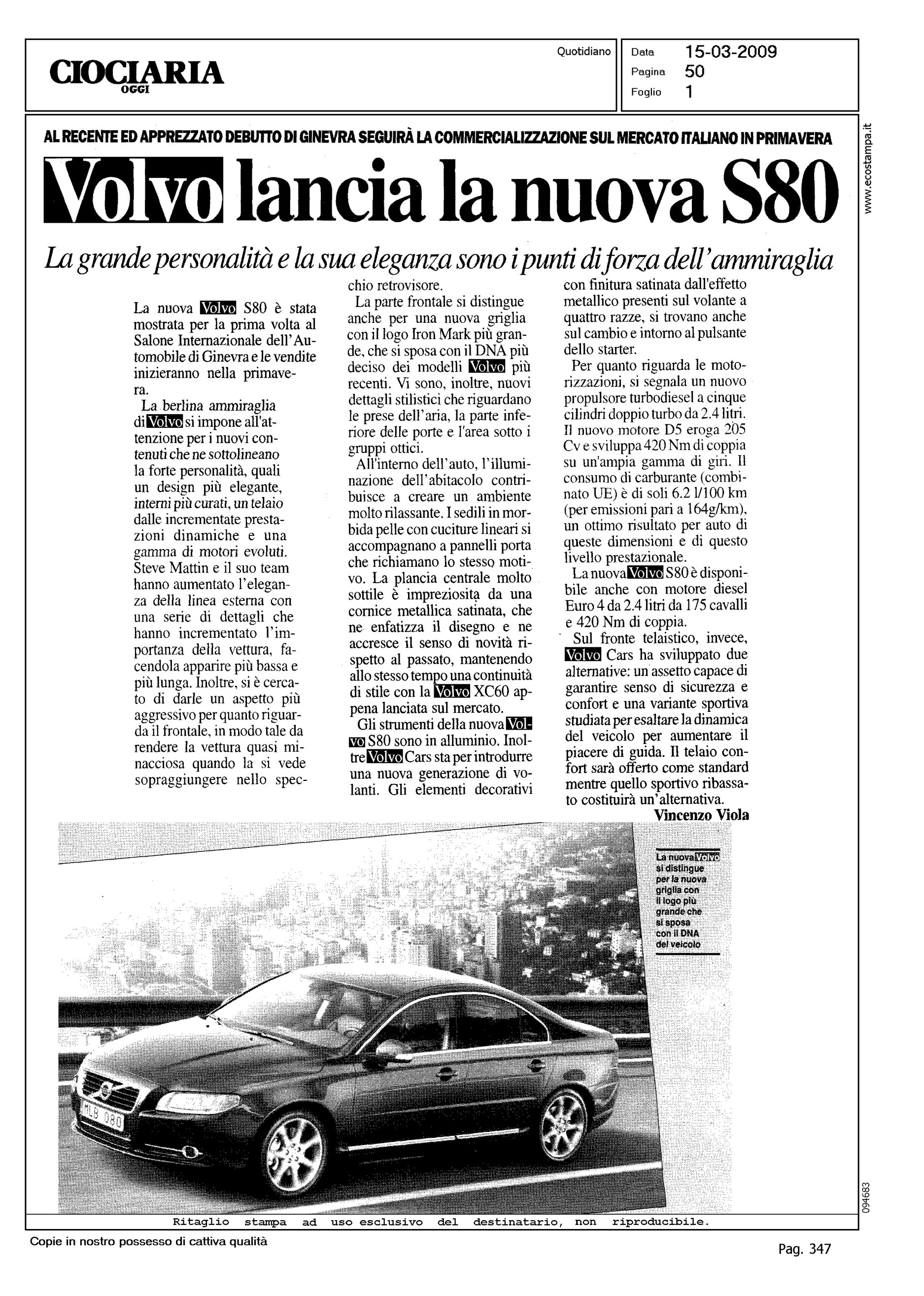 Author: VIOLA, VINCENZOLine: Corporate Model: Volvo S80 Subject: - Title: VOLVO LANCIA LA NUOVA S80Highlight: