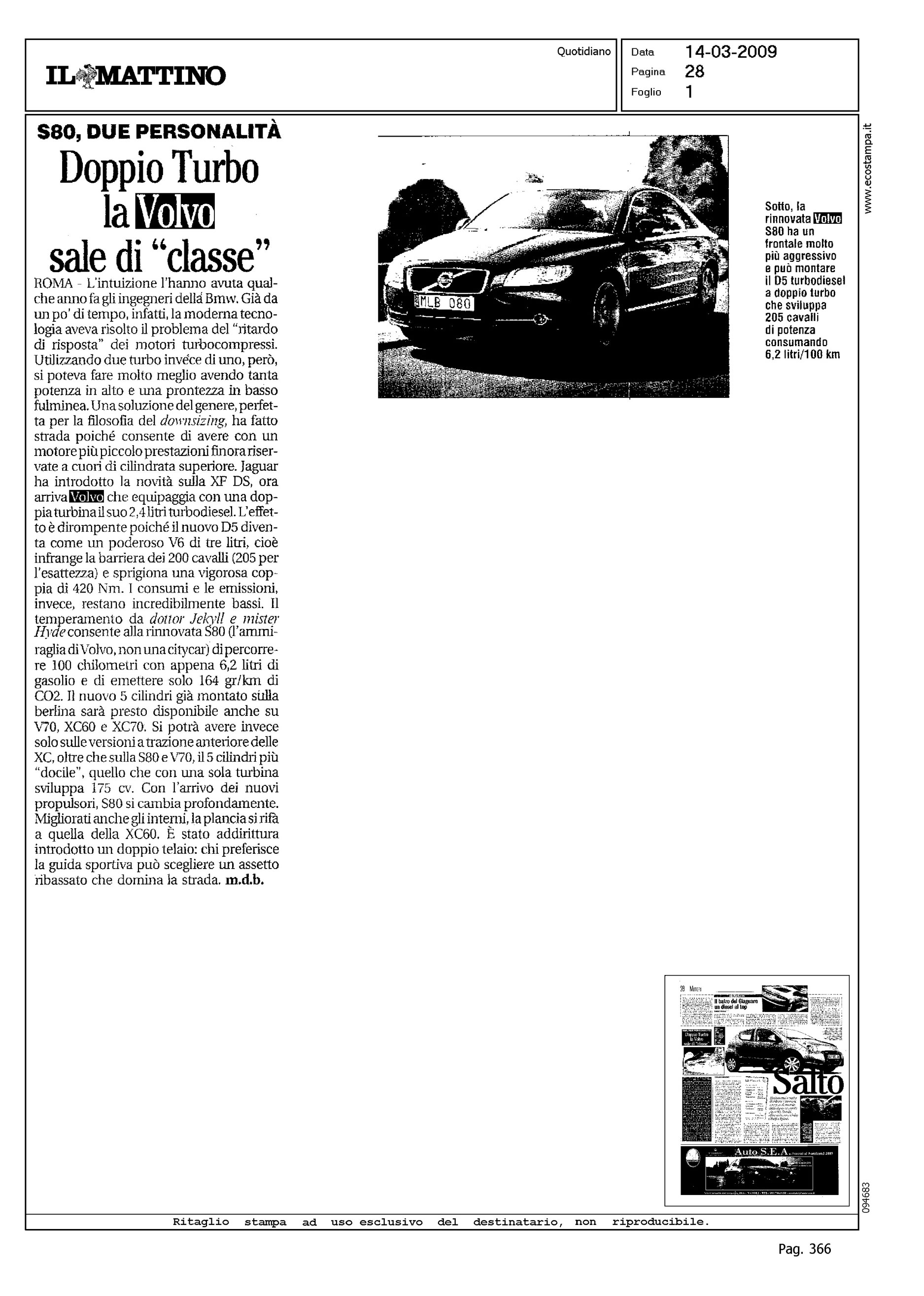Author: Line: Corporate Model: Volvo S80 Subject: - Title: DOPPIO TURBO - LA VOLVO SALE DI "CLASSE"Highlight:
