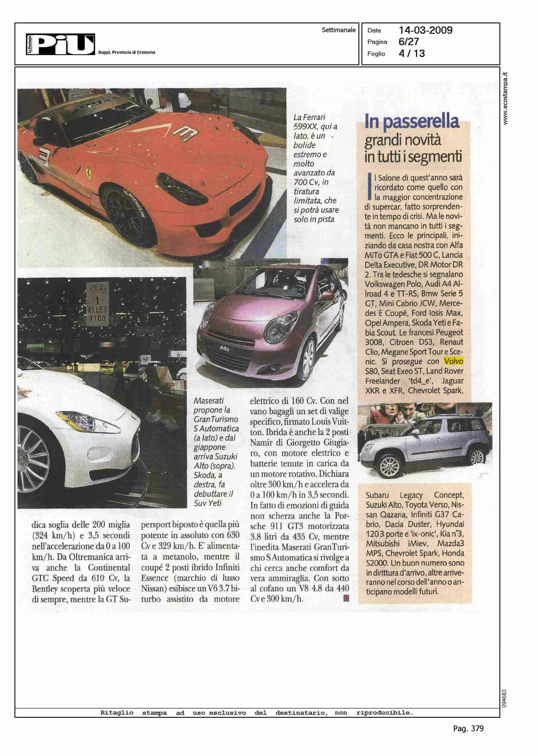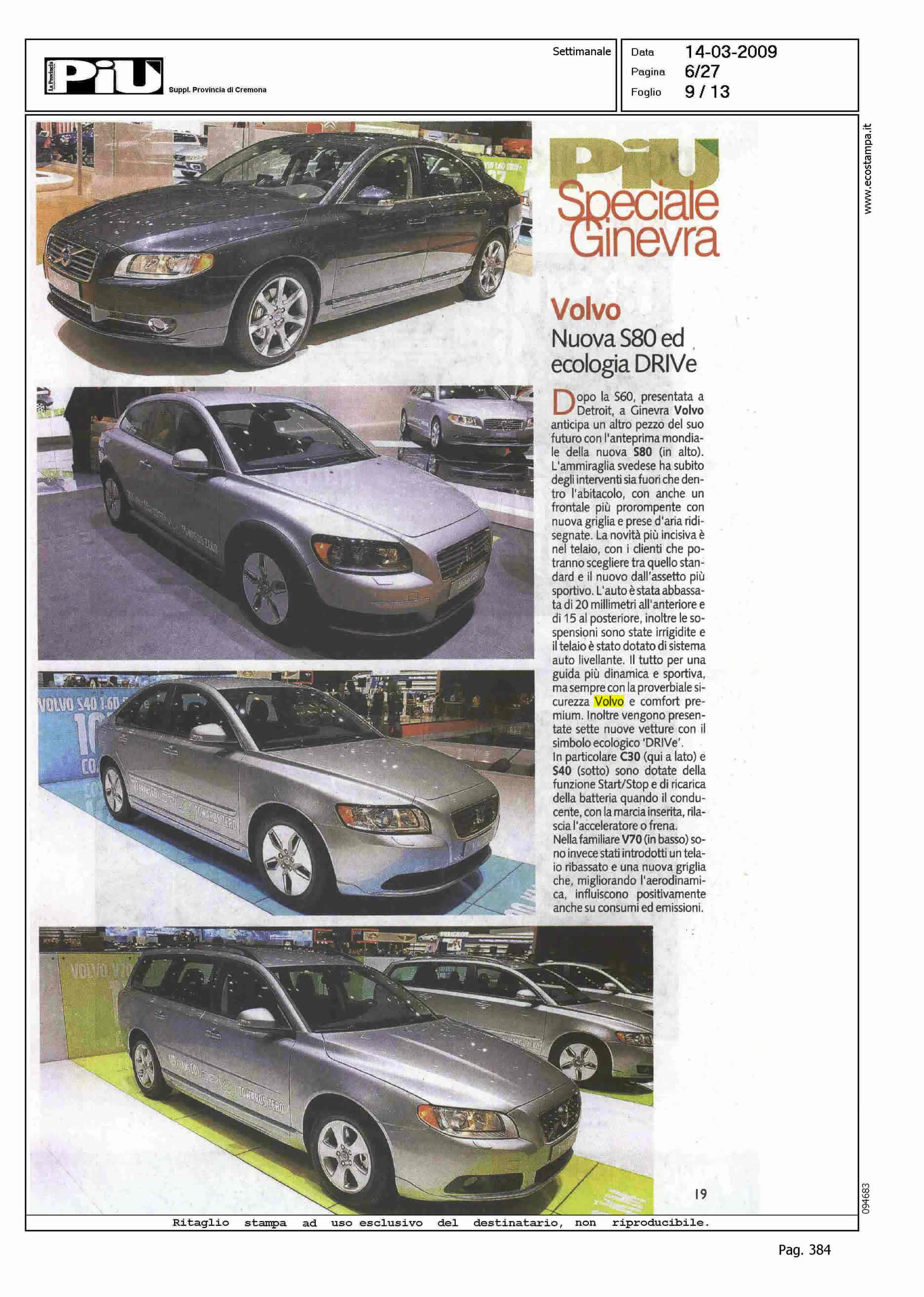 Author: CAPELLI, PAOLOLine: Corporate Model: Corporate Subject: Line (Range) Drive Title: VOLVO - NUOVA S80 ED ECOLOGIA DRIVeHighlight: