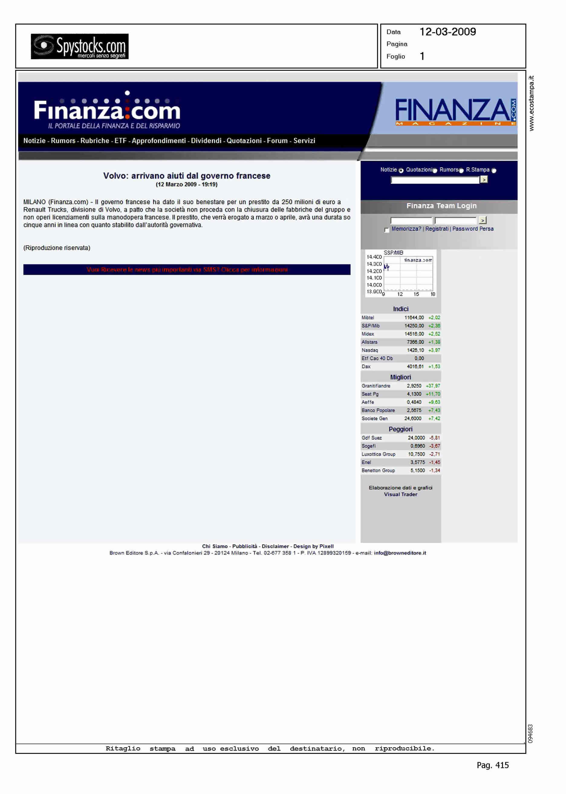 Author: Line: Corporate Model: Corporate Subject: - Title: VOLVO: ARRIVANO AIUTI DAL GOVERNO FRANCESEHighlight: