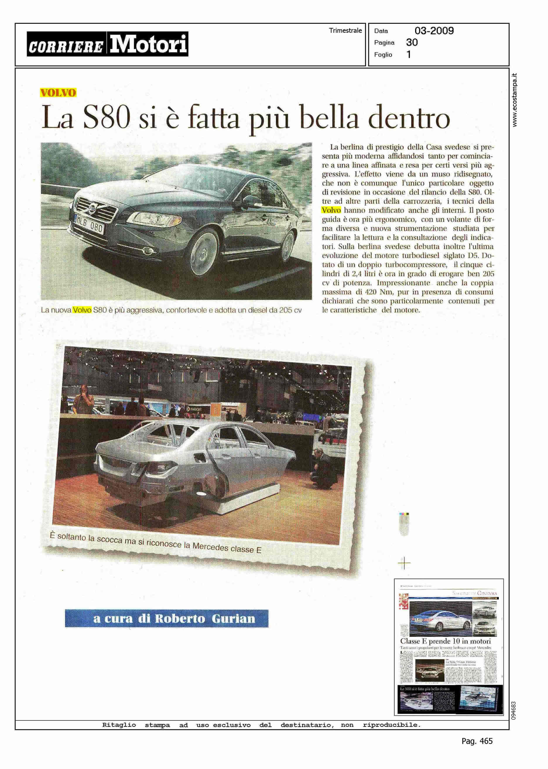 Author: GURIAN, ROBERTOLine: Corporate Model: Volvo S80 Subject: - Title: LA S80 SI E' FATTA PIU' BELLA DENTROHighlight: