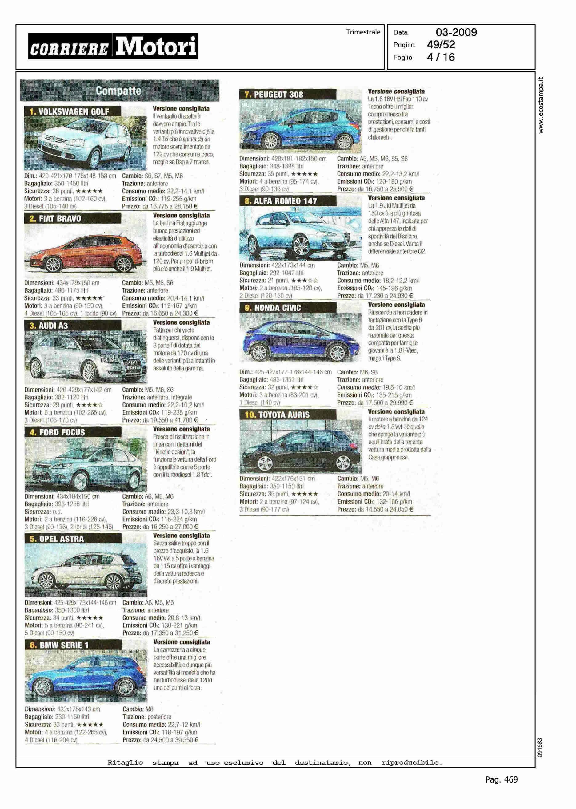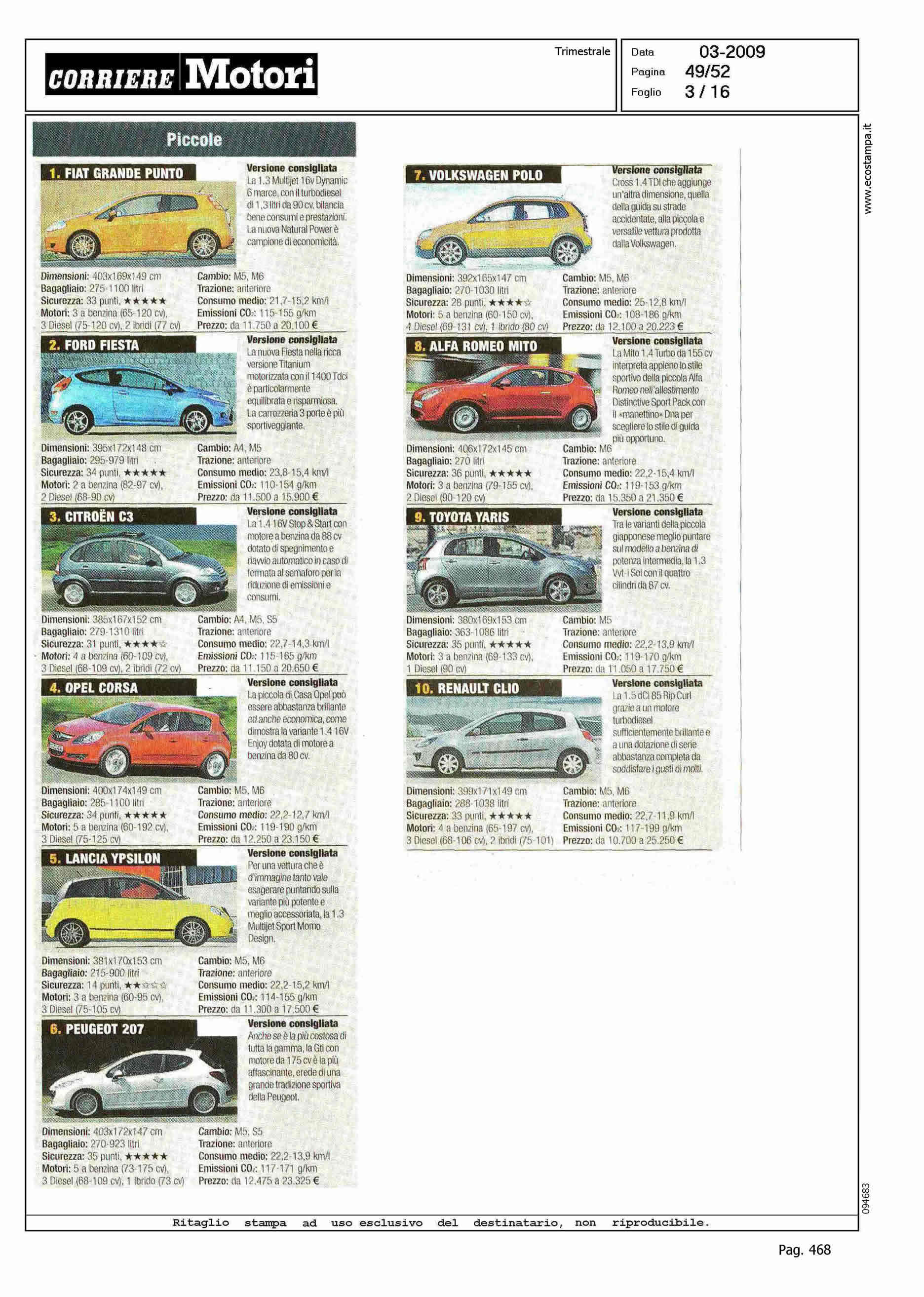 Author: Line: Corporate Model: Corporate Subject: - Title: HIT PARADE - I DIECI MODELLI PIU' VENDUTI DI OGNI CATEGORIAHighlight: