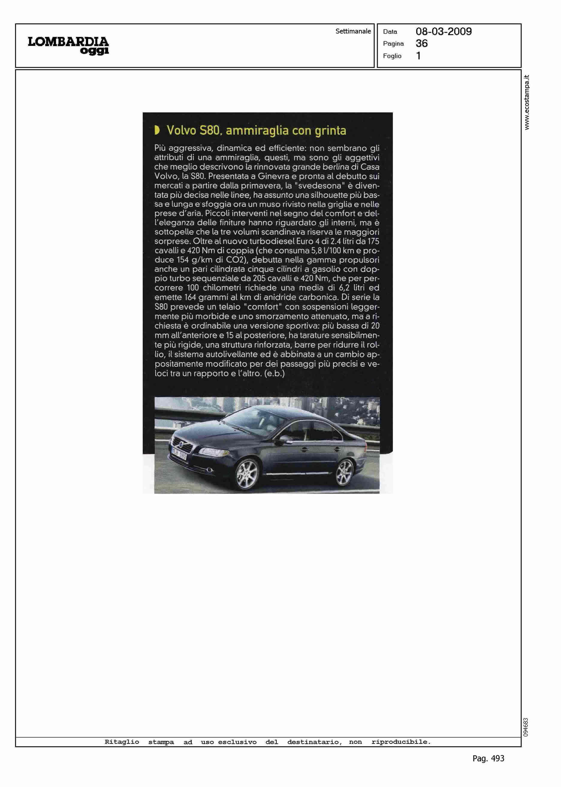 Author: Line: Corporate Model: Volvo S80 Subject: - Title: VOLVO S80, AMMIRAGLIA CON GRINTAHighlight: