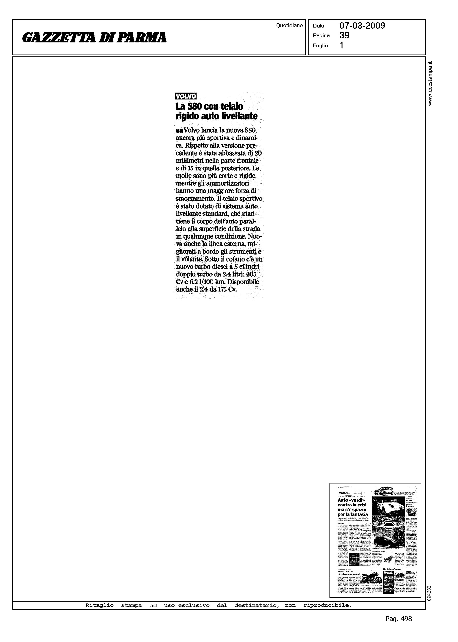 Author: Line: Corporate Model: Volvo S80 Subject: - Title: LA S80 CON TELAIO RIGIDO AUTO LIVELLANTEHighlight: