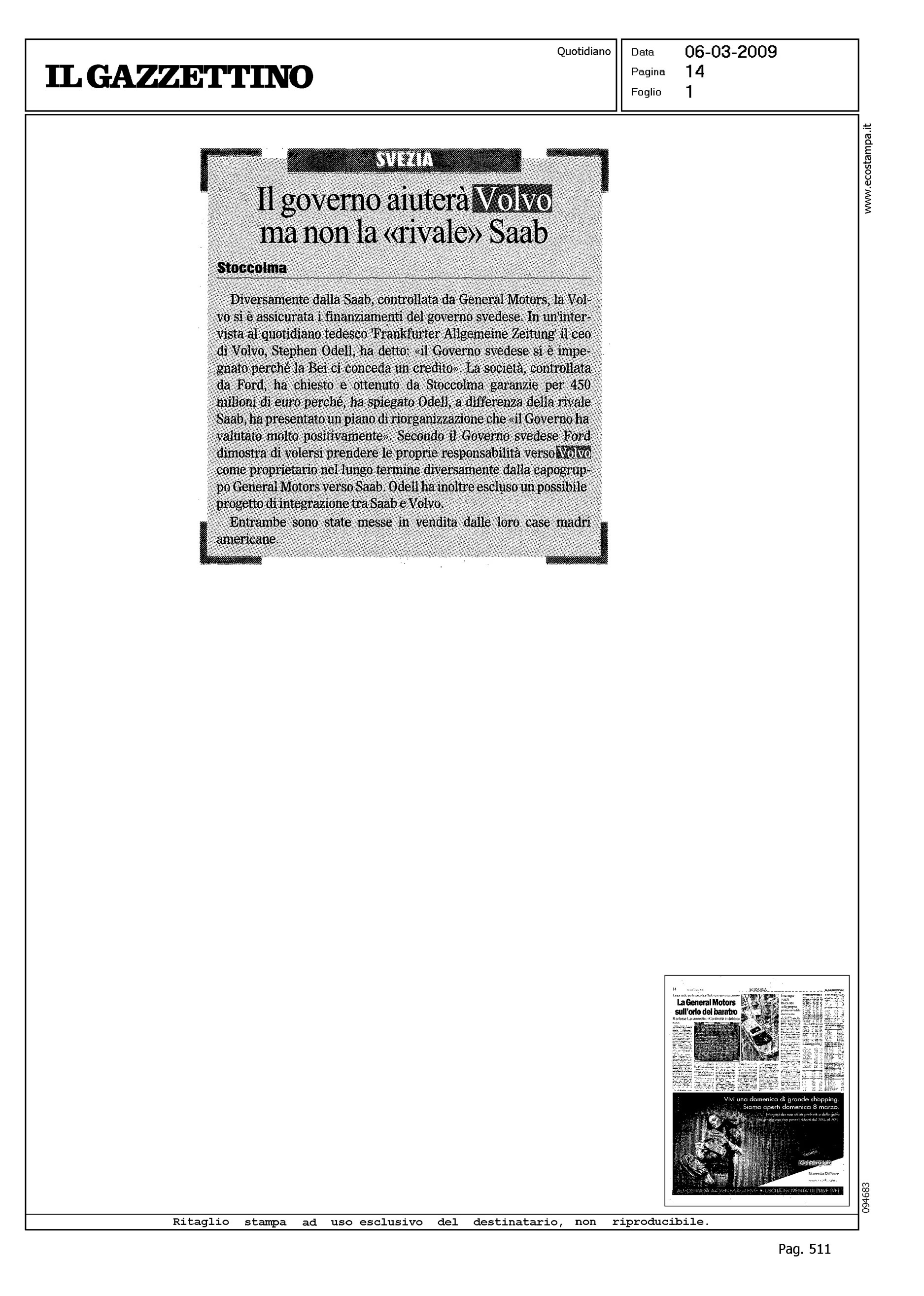 Author: Line: Corporate Model: Corporate Subject: - Title: IL GOVERNO AIUTERA' VOLVO MA NON LA "RIVALE" SAABHighlight: