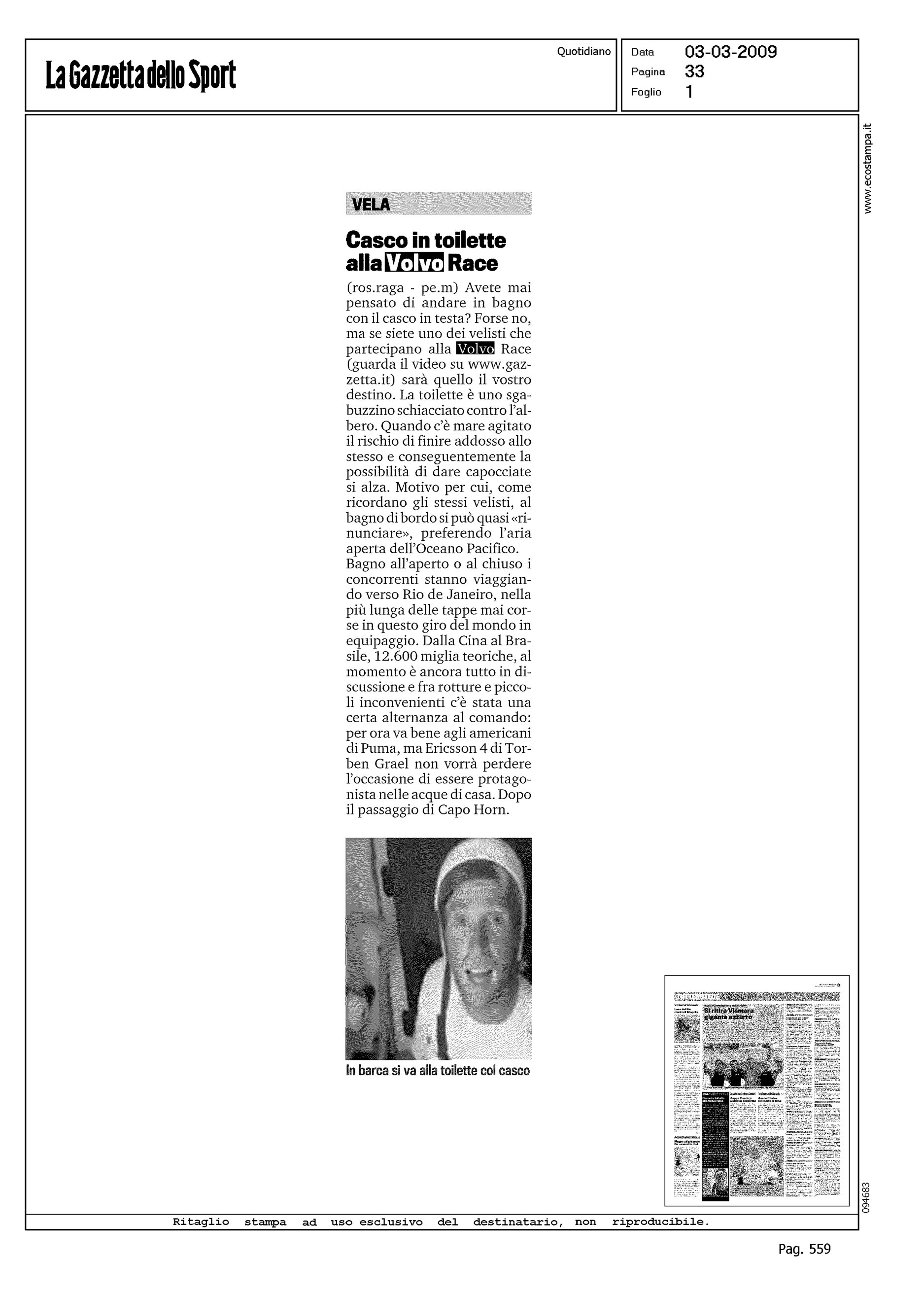 Author: Line: Corporate Model: Corporate Subject: Volvo Ocean Race Title: CASCO IN TOILETTE ALLA VOLVO RACEHighlight: