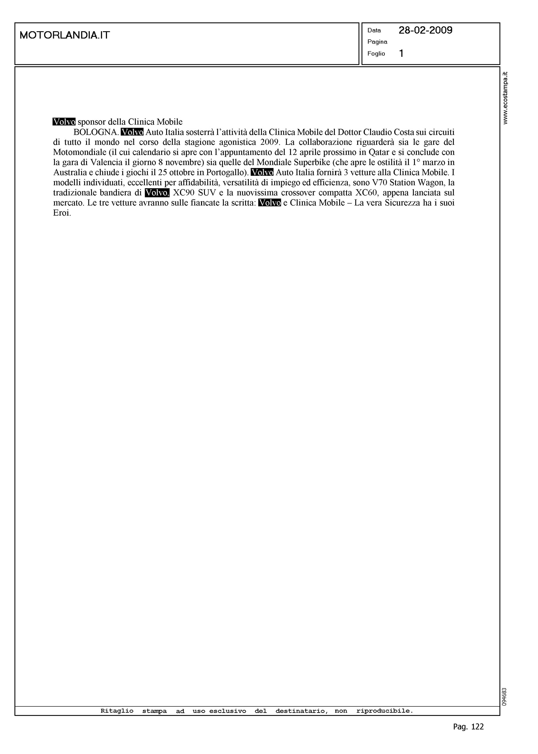 Author: Line: Corporate Model: Corporate Subject: - Title: VOLVO SPONSOR DELLA CLINICA MOBILEHighlight:
