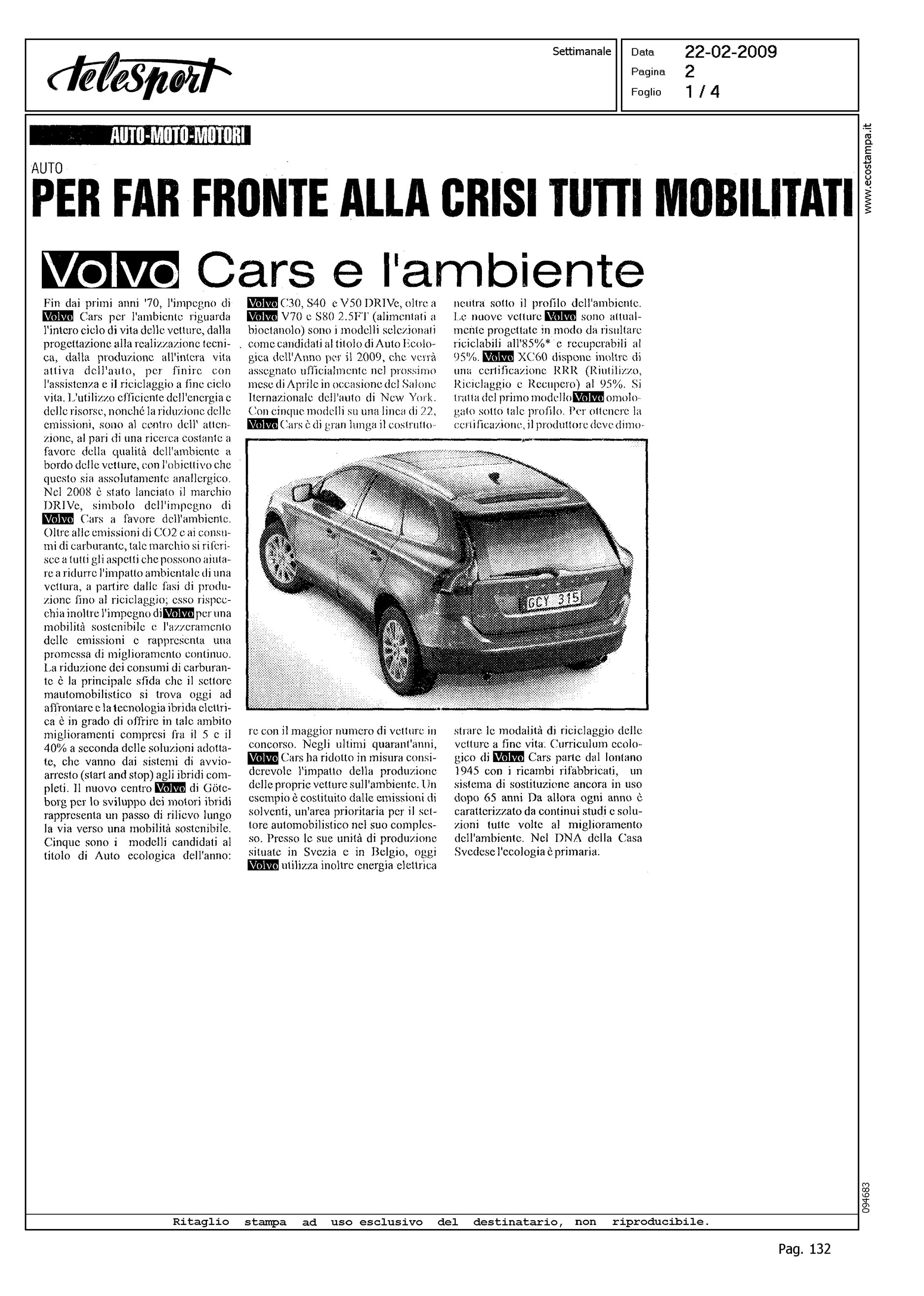 Author: Line: XC60 Model: Subject: - Title: PER FAR FRONTE ALLA CRISI TUTTI MOBILITATI - VOLVO CARS E L'AMBIENTEHighlight: