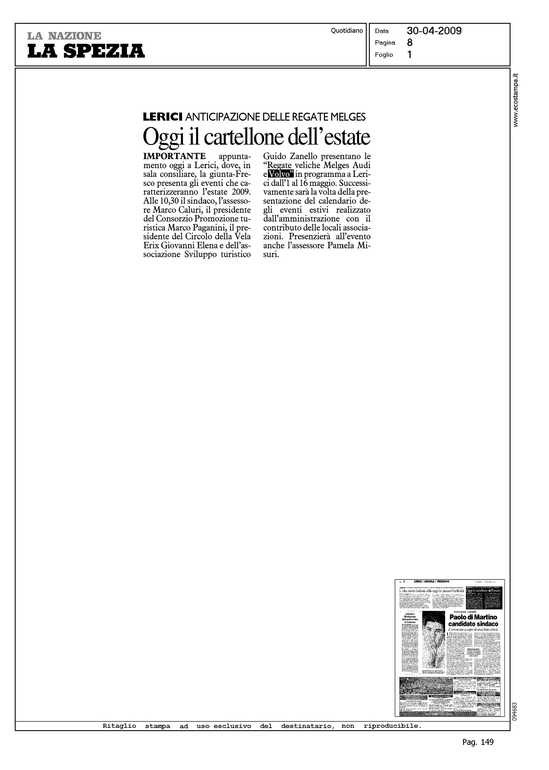 Author: Line: Corporate Model: Corporate Subject: Volvo Cup Title: LA NAZIONE - ED. LA SPEZIA - LERICI. ANTICIPAZIONE DELLE REGATE MELGES - OGGI IL CARTELLONE DELL'ESTATEHighlight: