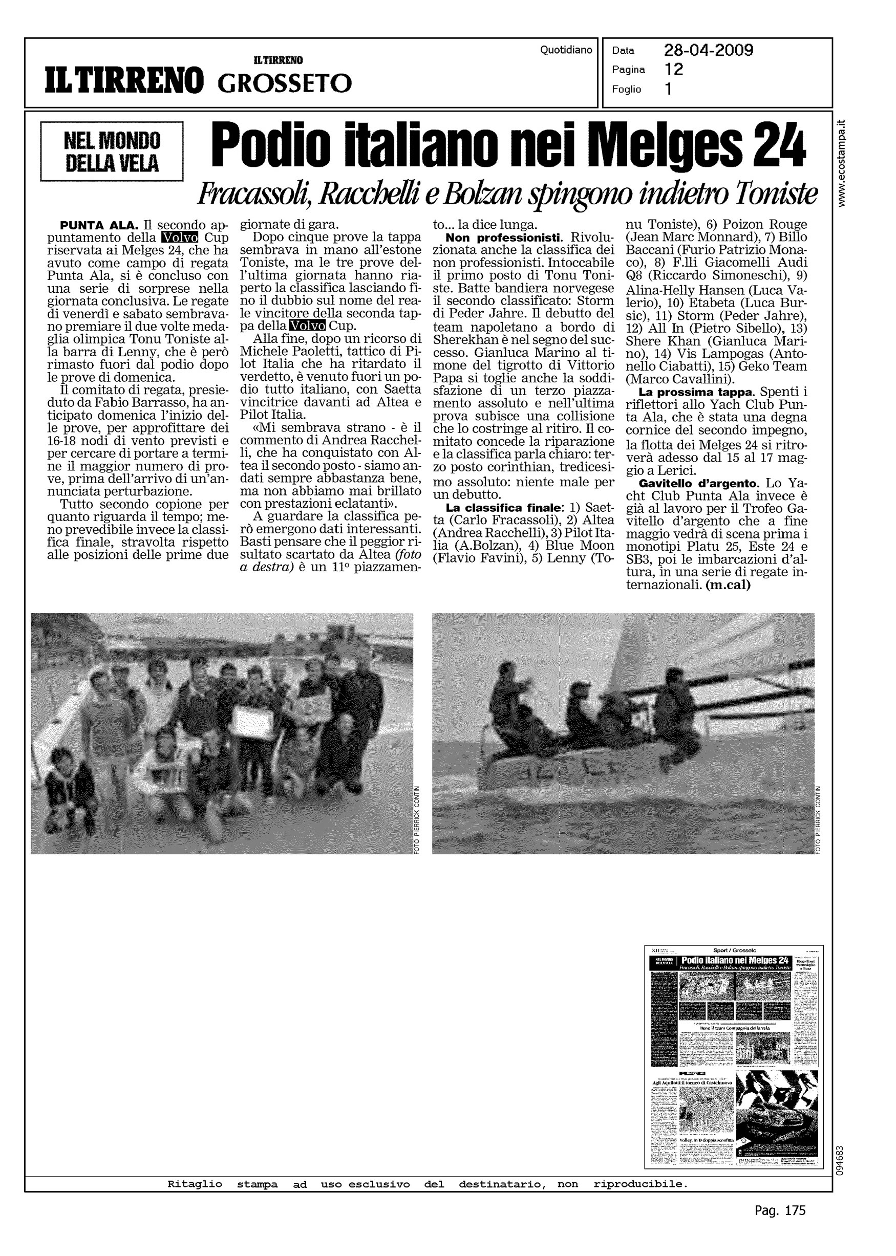 Author: Line: Corporate Model: Corporate Subject: Volvo Cup Title: PODIO ITALIANO NEI MELGES 24Highlight: