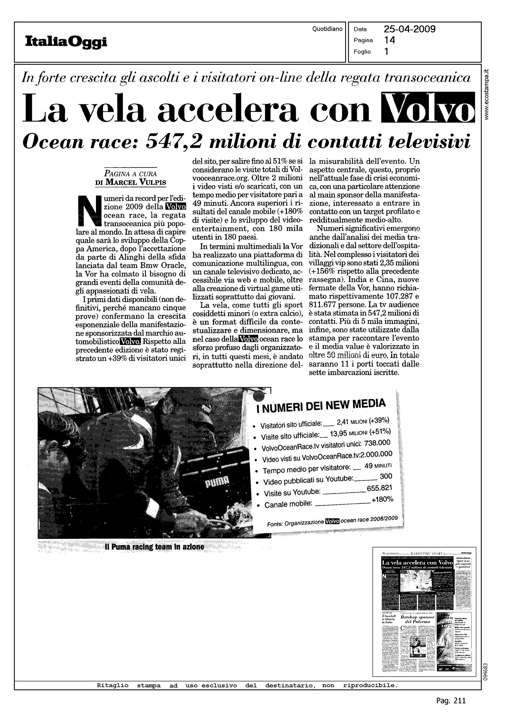 Author: VULPIS, MARCELLine: Corporate Model: Corporate Subject: Volvo Ocean Race Title: LA VELA ACCELERA CON VOLVOHighlight: