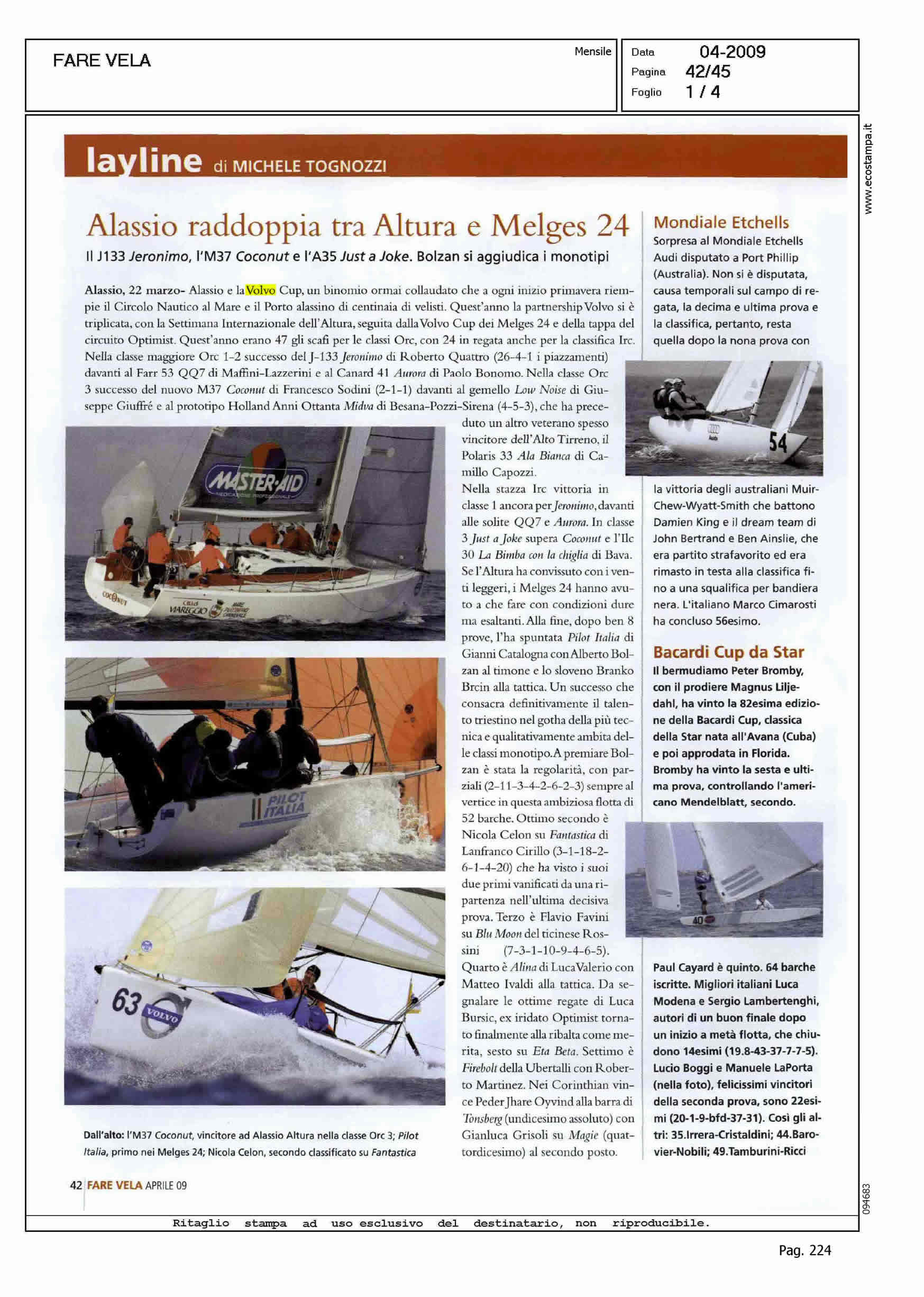 Author: TOGNOZZI, MICHELELine: Corporate Model: Corporate Subject: Volvo Cup Title: ALASSIO RADDOPPIA TRA ALTURA E MELGES 24 - MARSALA D'INVERNOHighlight: