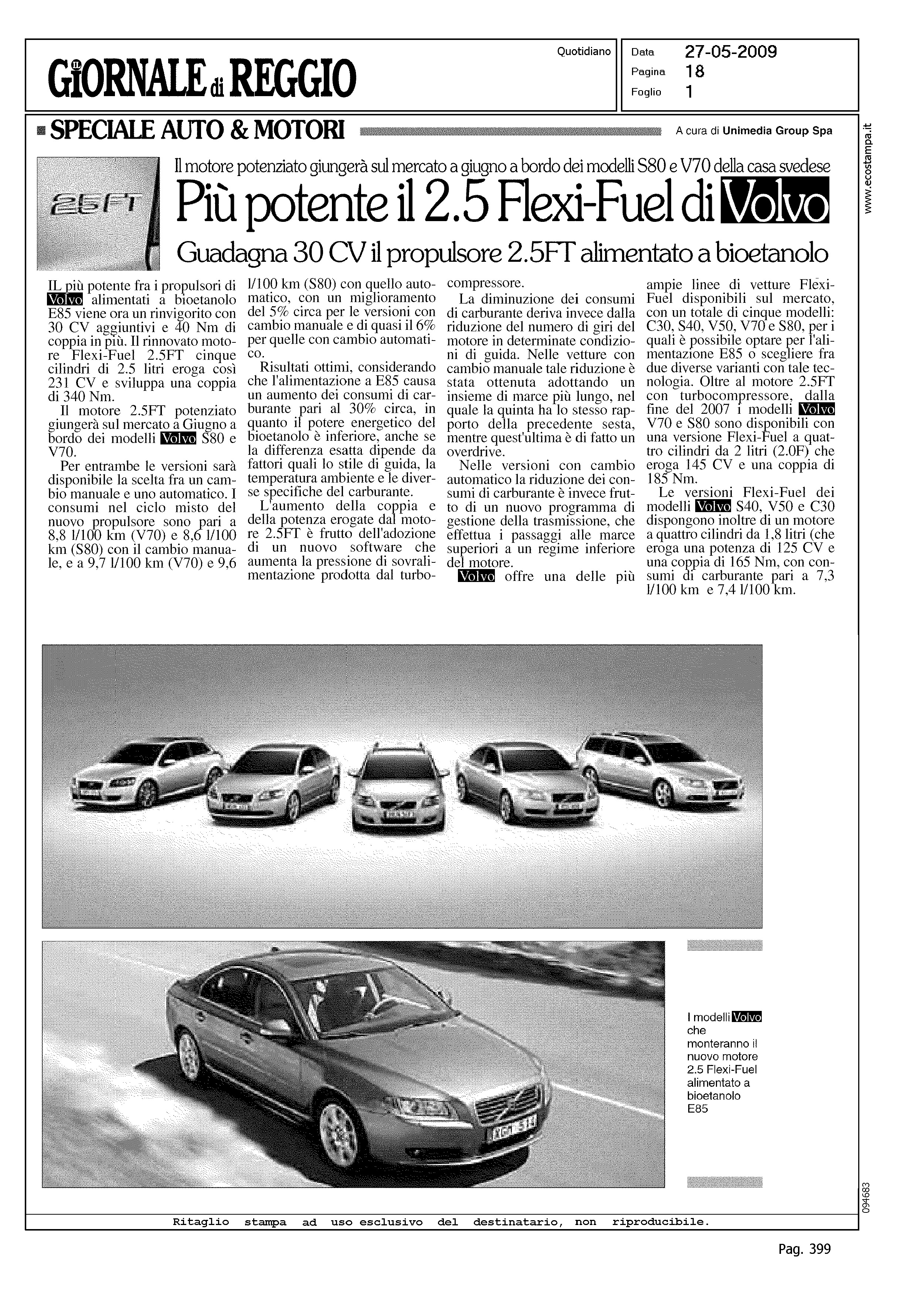 Author: Line: Corporate Model: Corporate Subject: Flexifuel Title: PIU' POTENTE IL 2.5 FLEXI-FUEL DI VOLVOHighlight: