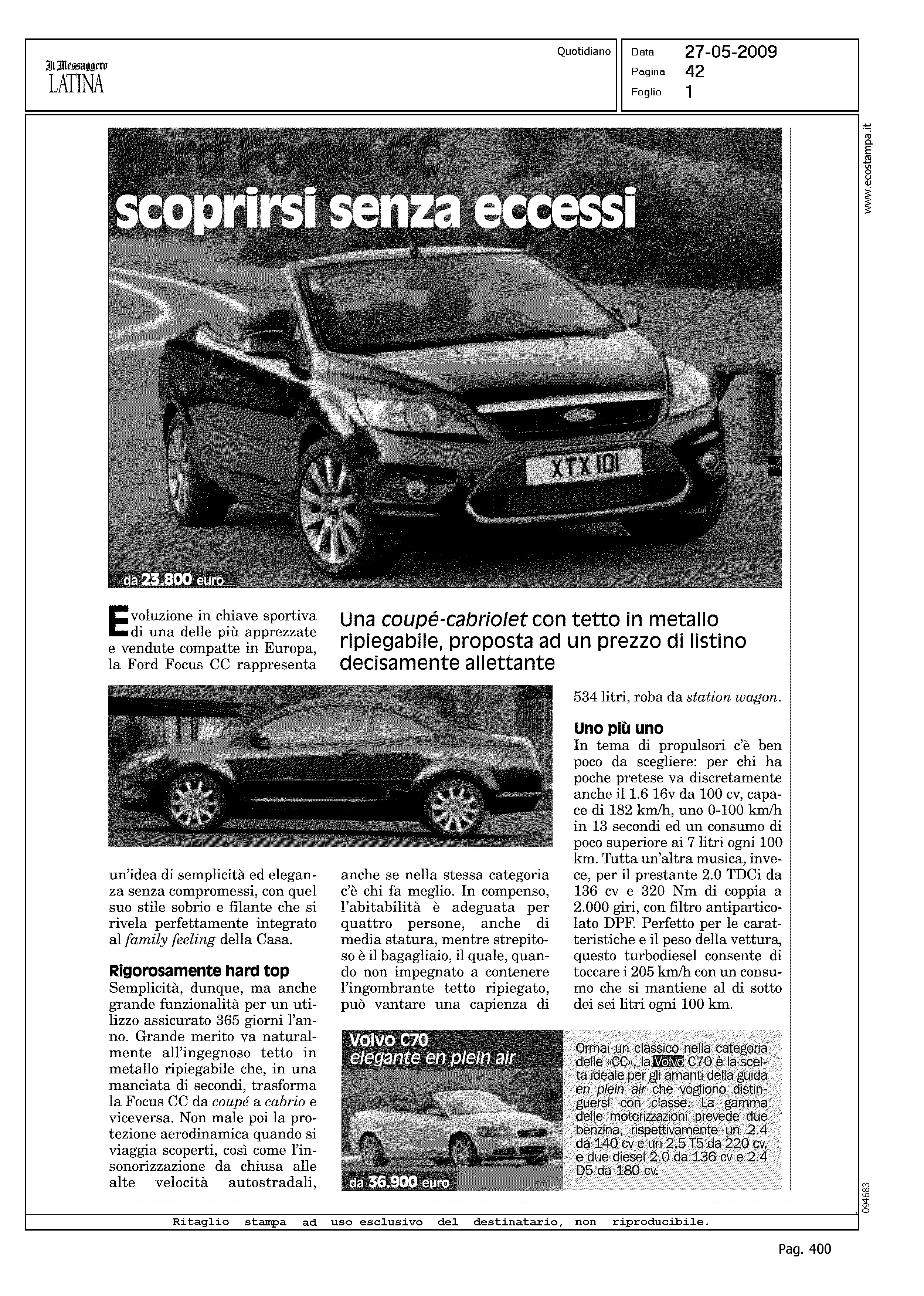 Author: Line: Corporate Model: Volvo C70 Convertible Subject: - Title: VOLVO C70 - ELEGANTE EN PLEN AIRHighlight:
