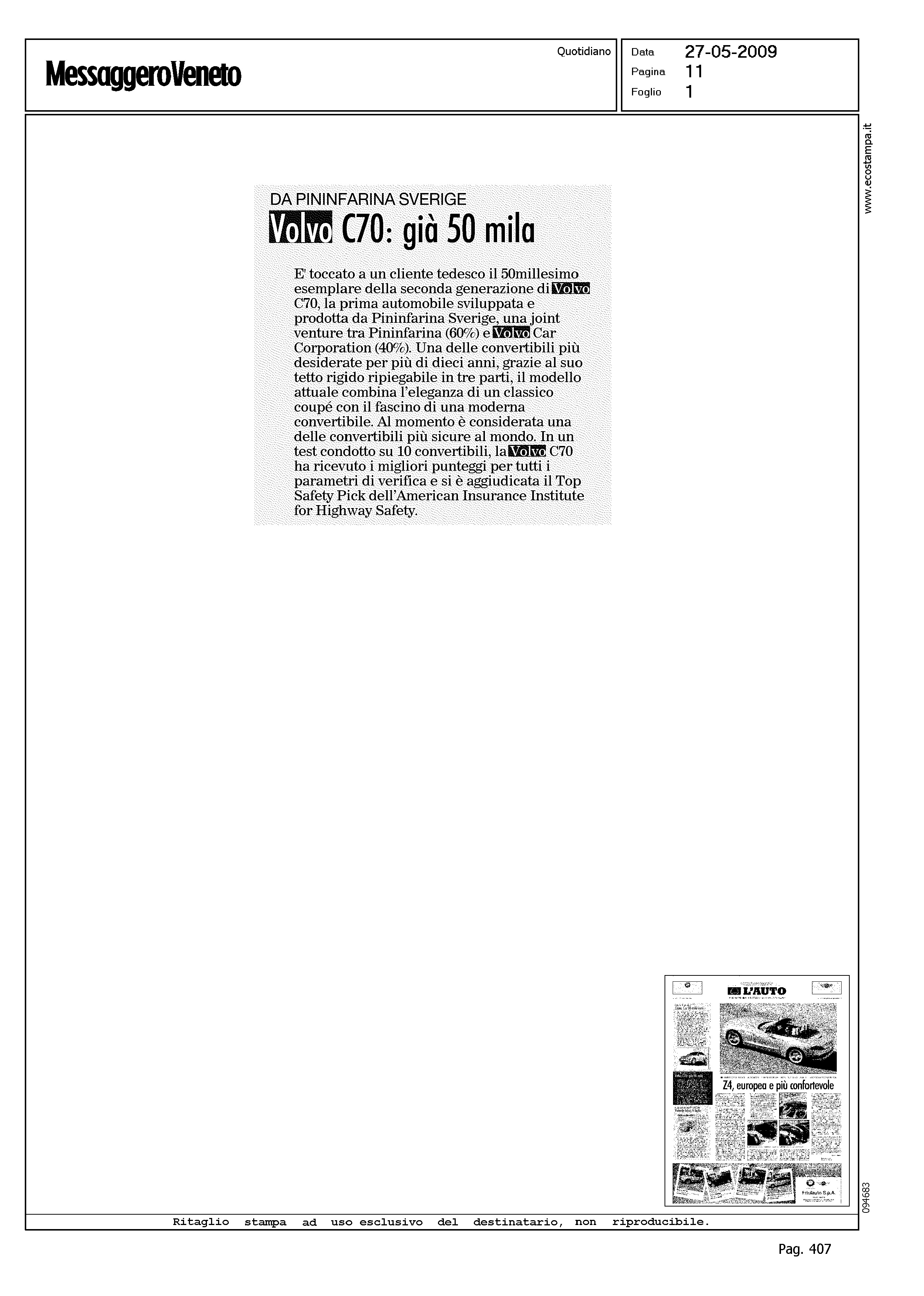 Author: Line: Corporate Model: Volvo C70 Convertible Subject: - Title: VOLVO C70: GIA' 50 MILAHighlight: