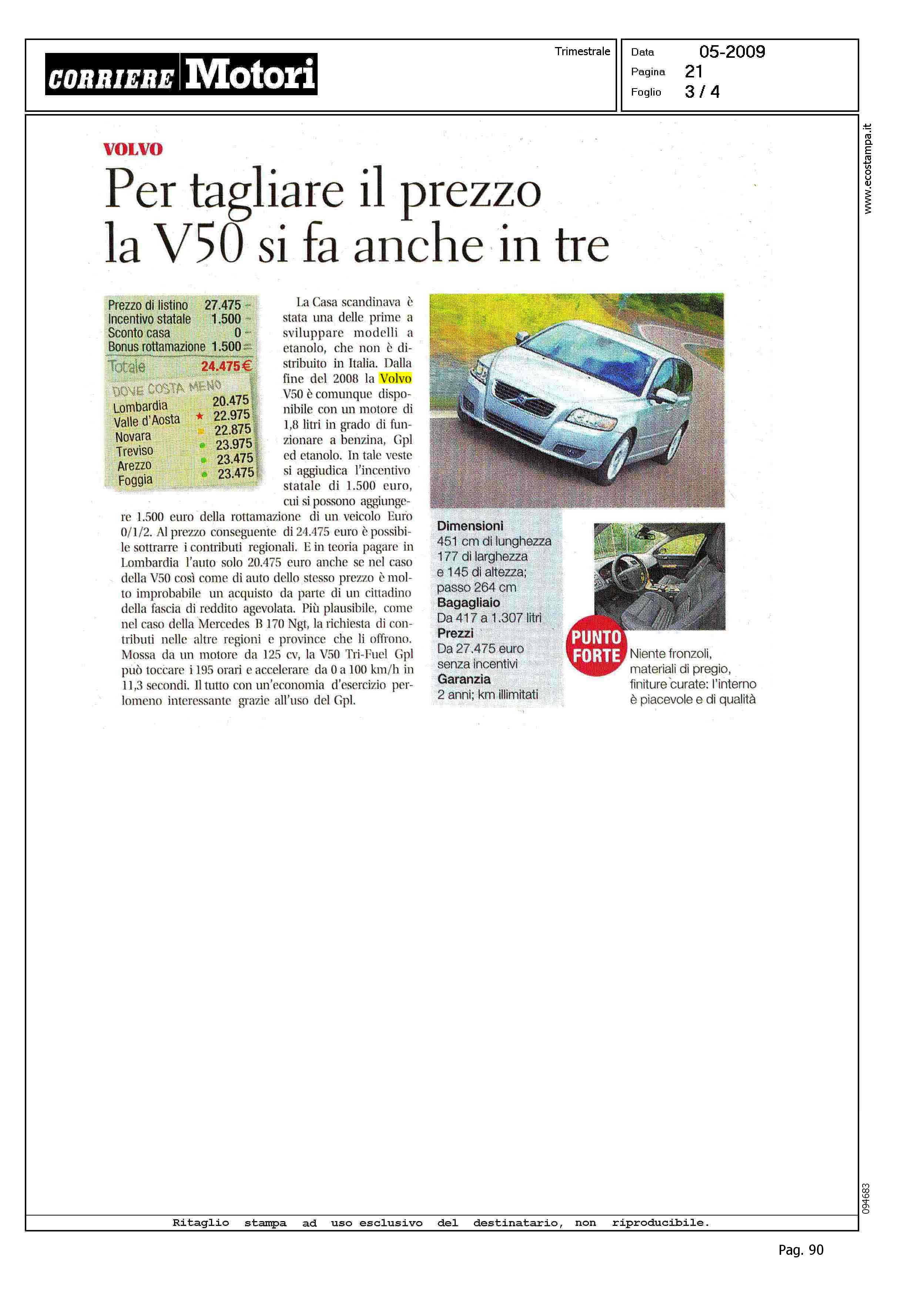 Author: Line: Corporate Model: Volvo S40 - V50 Subject: V50 Tri-Fuel Title: VOLVO - PER TAGLIARE IL PREZZO LA V50 SI ANCHE IN TREHighlight: