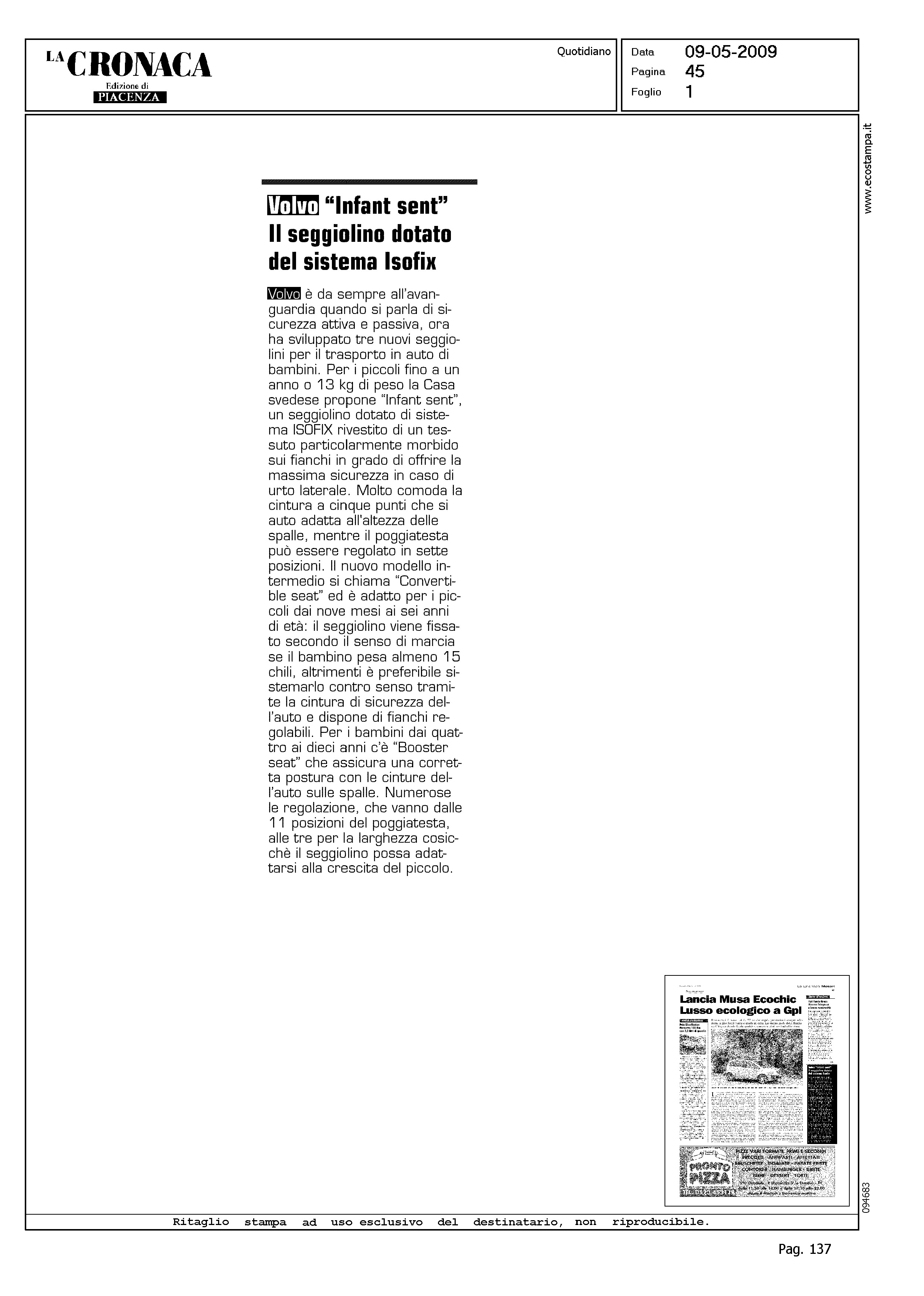 Author: Line: Corporate Model: Corporate Subject: - Title: VOLVO - 'INFANT SENT' IL SEGGIOLINO DOTATO DEL SISTEMA ISOFIXHighlight: