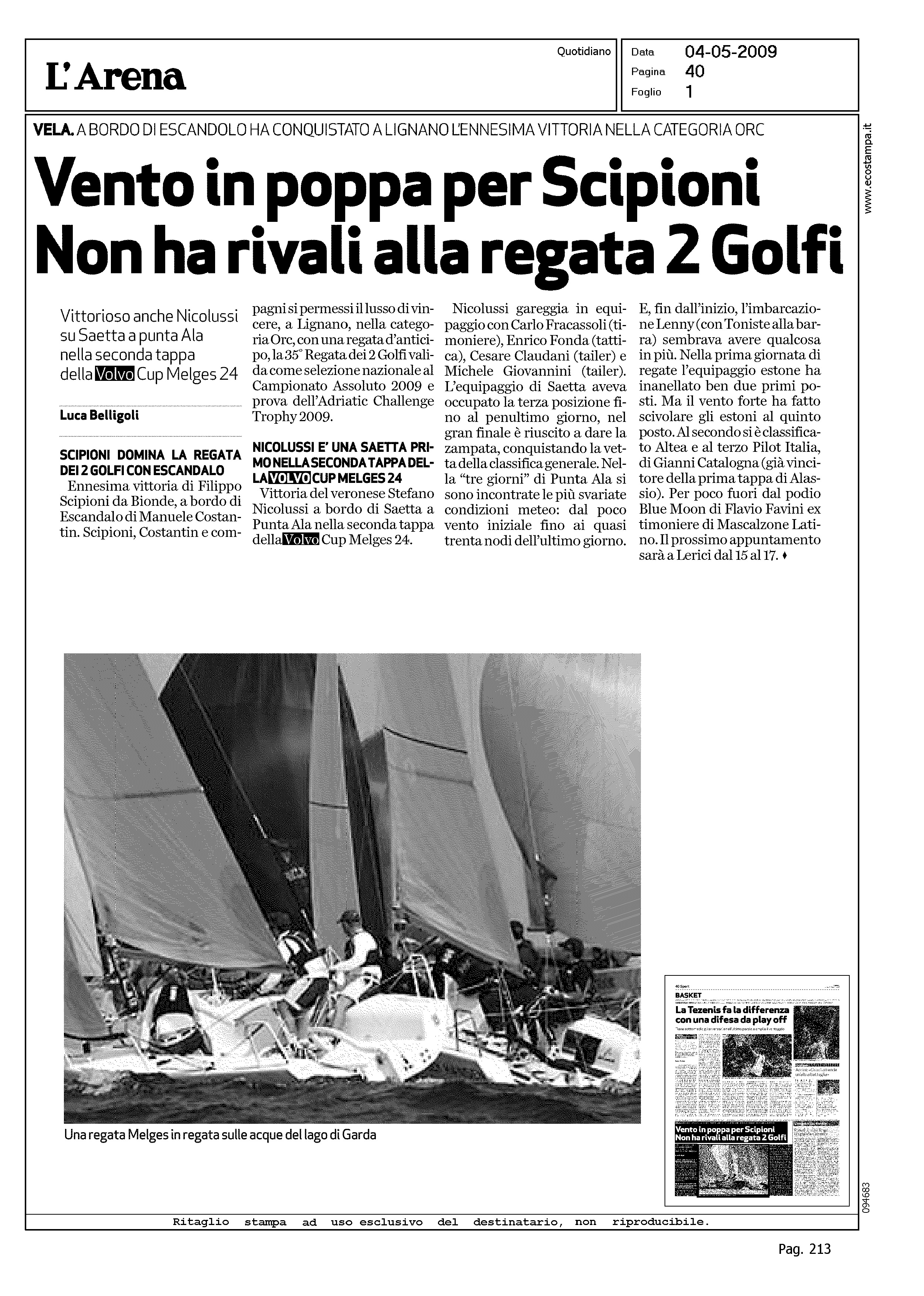 Author: BELLIGOLI, LUCALine: Corporate Model: Corporate Subject: Volvo Cup Title: VENTO IN POPPA PER SCIPIONI - NON HA RIVALI ALLA REGATA 2 GOLFIHighlight: