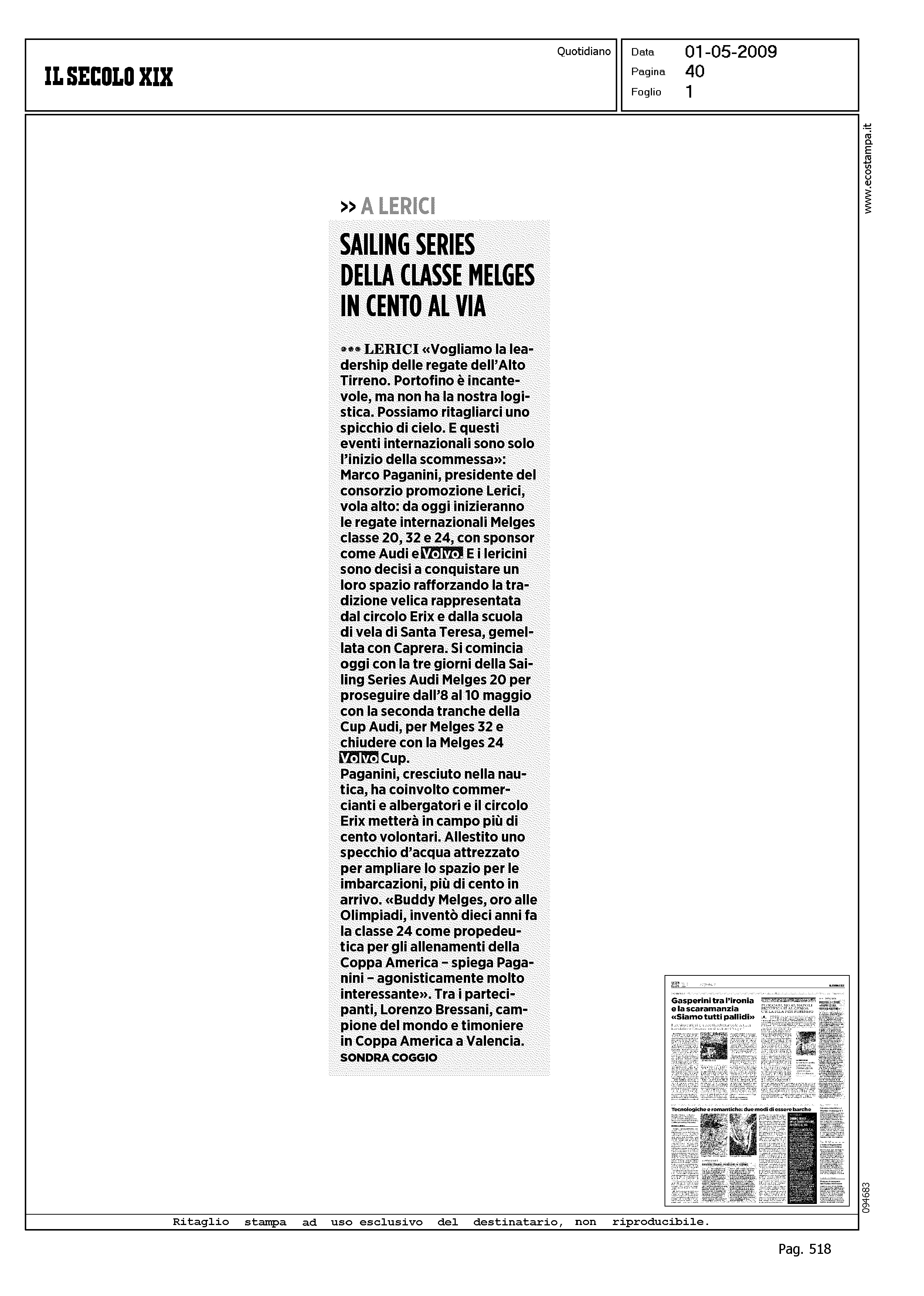 Author: Line: Corporate Model: Corporate Subject: Volvo Cup Title: SAILING SERIES DELLA CLASSE MELGES - IN CENTO AL VIAHighlight: