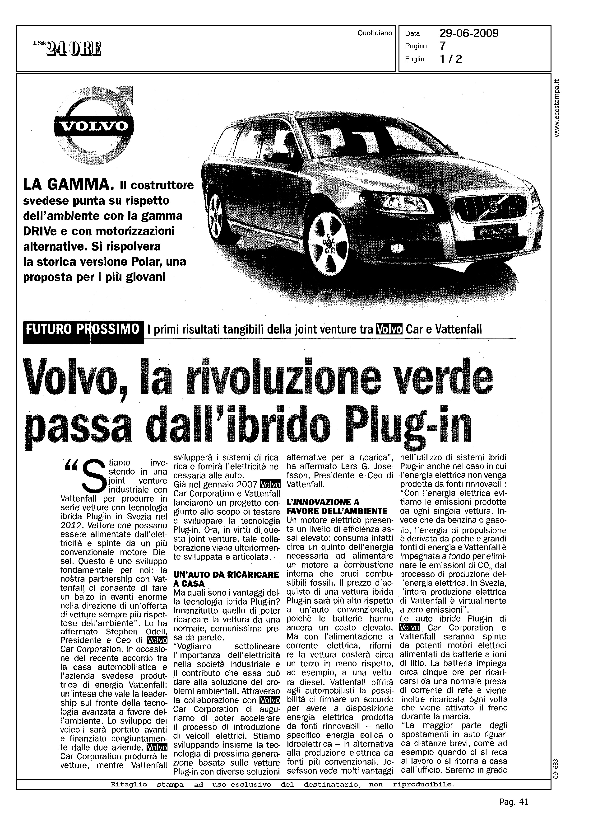 Author: Line: Corporate Model: Corporate Subject: - Title: VOLVO, LA RIVOLUZIONE VERDE PASSA DALL'IBRIDO PLUG-INHighlight: