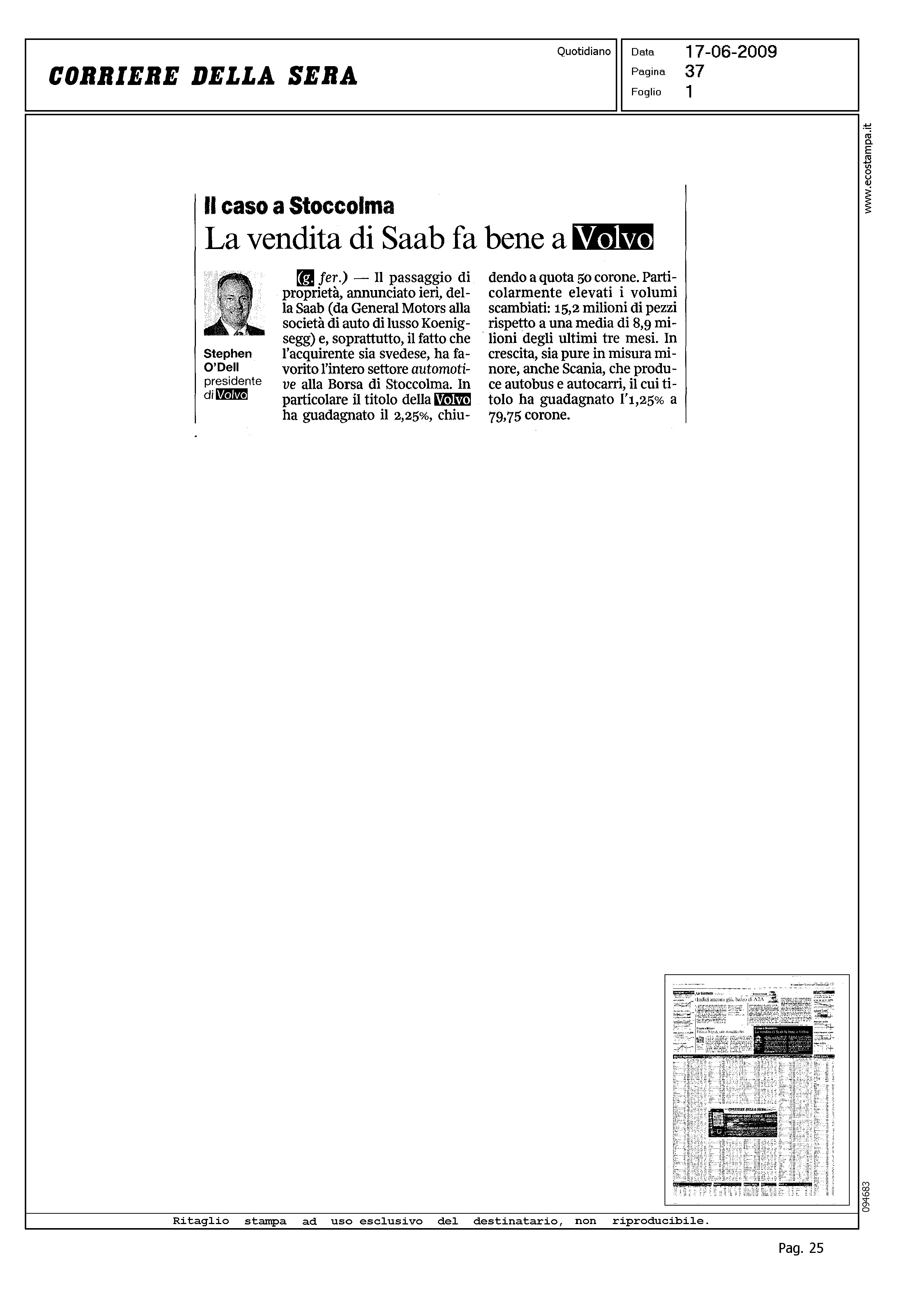 Author: Line: Corporate Model: Corporate Subject: - Title: IL CASO A STOCCOLMA - LA VENDITA DI SAAB FA BENE A VOLVOHighlight: