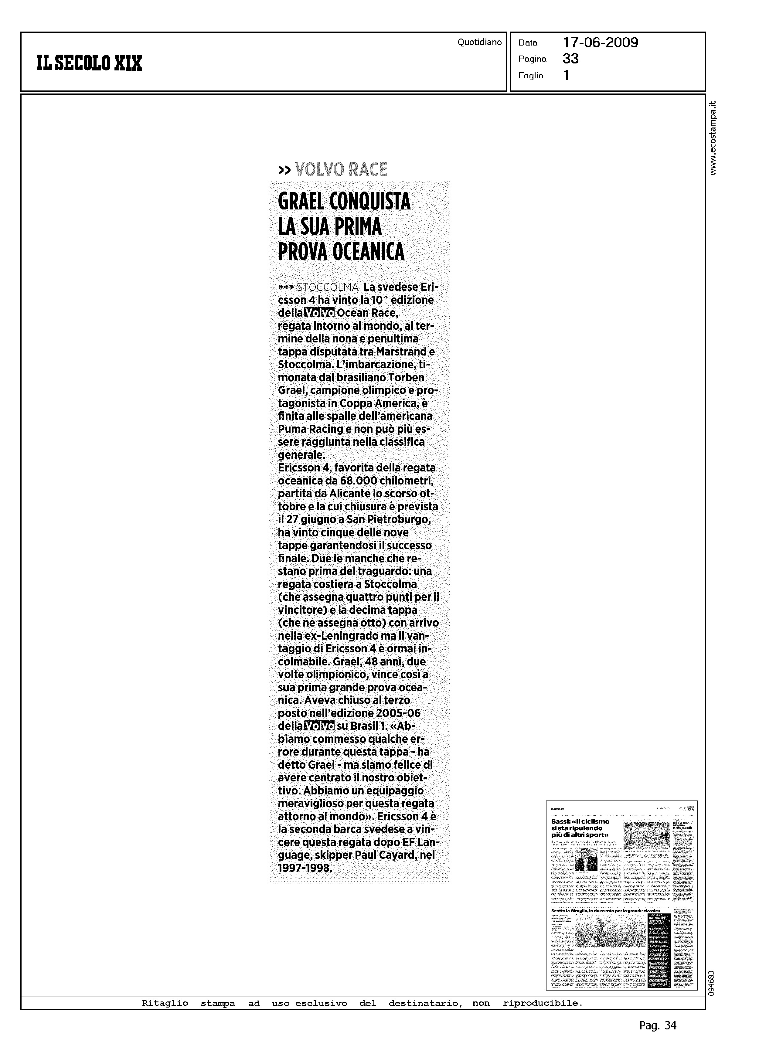 Author: Line: Corporate Model: Corporate Subject: Volvo Ocean Race Title: GRAEL CONQUIST LA SUA PRIMA PROVA OCEANICAHighlight: