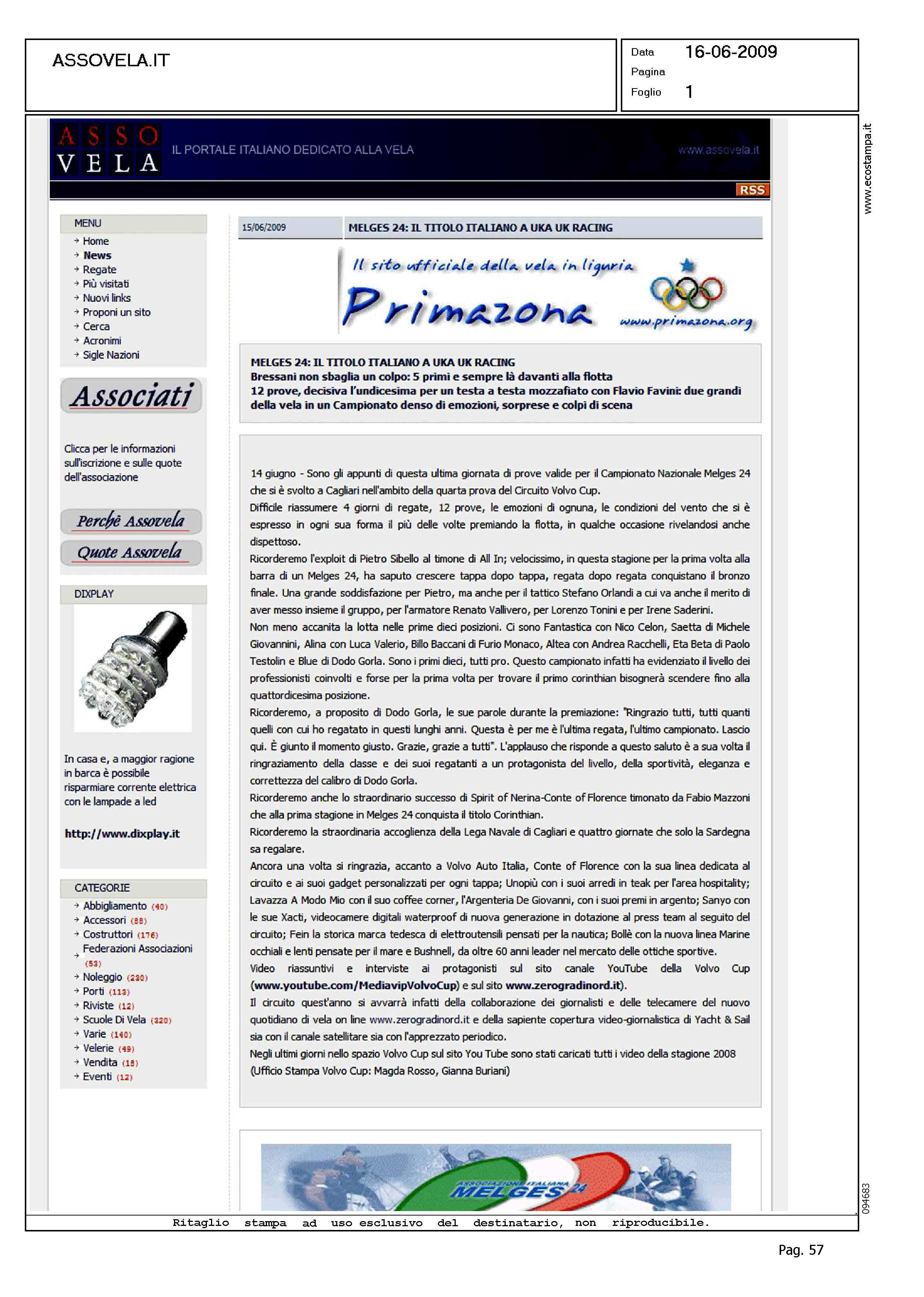 Author: Line: Corporate Model: Corporate Subject: Volvo Cup Title: MELGES 24: IL TITOLO ITALIANO A UKA UK RACINGHighlight: